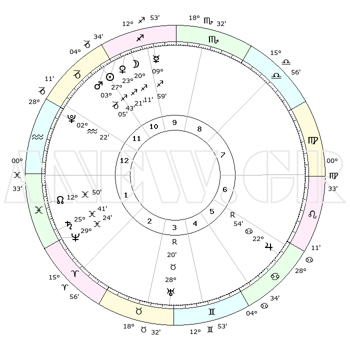 | | ΘΕΣΕΙΣ ΠΛΑΝΗΤΩΝ ΑΣΤΡΟΛΟΓΙΚΟΥ ΧΑΡΤΗ ΤΗΣ ΣΤΙΓΜΗΣ ΑΥΤΗΣ | | | | Πλανήτης | Ζώδιο | Μοίρες | Δεκαήμ. | Σε οίκο | Απόκλιση | | Ακμές των οίκων | | Ηλιος | Τοξότης | 27°39' | Τρίτο | 11 | 23 S 25 | | 1ος | 28°00' | Αιγόκερως | | Σελήνη | Τοξότης | 19°22' | Δεύτερο | 11 | 27 S 57 | | 2ος | 11°46' | Ιχθείς | | Ερμής | Τοξότης | 09°54' | Πρώτο | 10 | 20 S 57 | | 3ος | 20°31' | Κριός | | Αφροδίτη | Τοξότης | 23°16' | Τρίτο | 11 | 23 S 16 | | 4ος | 19°20' | Ταύρος | | Αρης | Αιγόκερως | 03°02' | Πρώτο | 11 | 24 S 12 | | 5ος | 12°14' | Δίδυμοι | | Δίας | Καρκίνος | 22°54'R | Τρίτο | 6 | 21 N 42 | | 6ος | 03°36' | Καρκίνος | | Κρόνος | Ιχθείς | 25°41' | Τρίτο | 2 | 03 S 50 | | 7ος | 28°00' | Καρκίνος | | Ουρανός | Ταύρος | 28°20'R | Τρίτο | 4 | 19 N 35 | | 8ος | 11°46' | Παρθένος | | Ποσειδώνας | Ιχθείς | 29°24' | Τρίτο | 2 | 01 S 28 | | 9ος | 20°31' | Ζυγός | | Πλούτωνας | Υδροχόος | 02°21' | Πρώτο | 1 | 23 S 18 | | 10ος | 19°19' | Σκορπιός | | Β. Δεσμός | Ιχθείς | 12°50' | Δεύτερο | 2 | 06 S 44 | | 11ος | 12°14' | Τοξότης | | Ωροσκόπος | Αιγόκερως | 28°00' | Τρίτο | | | 12ος | 03°36' | Αιγόκερως | | Μεσουράνημα | Σκορπιός | 19°19' | Δεύτερο | | | |