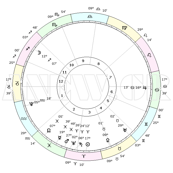 | | ΘΕΣΕΙΣ ΠΛΑΝΗΤΩΝ ΑΣΤΡΟΛΟΓΙΚΟΥ ΧΑΡΤΗ ΤΗΣ ΣΤΙΓΜΗΣ ΑΥΤΗΣ | | | | Πλανήτης | Ζώδιο | Μοίρες | Δεκαήμ. | Σε οίκο | Απόκλιση | | Ακμές των οίκων | | Ηλιος | Κριός | 17°07' | Δεύτερο | 4 | 06 N 43 | | 1ος | 22°46' | Τοξότης | | Σελήνη | Τοξότης | 11°16' | Δεύτερο | 12 | 27 S 14 | | 2ος | 28°09' | Αιγόκερως | | Ερμής | Ιχθείς | 19°34' | Δεύτερο | 3 | 06 S 02 | | 3ος | 07°27' | Ιχθείς | | Αφροδίτη | Ταύρος | 08°56' | Πρώτο | 4 | 14 N 17 | | 4ος | 12°25' | Κριός | | Αρης | Ιχθείς | 27°45' | Τρίτο | 3 | 01 S 50 | | 5ος | 09°55' | Ταύρος | | Δίας | Καρκίνος | 16°13' | Δεύτερο | 7 | 22 N 49 | | 6ος | 02°17' | Δίδυμοι | | Κρόνος | Κριός | 06°24' | Πρώτο | 3 | 00 N 35 | | 7ος | 22°46' | Δίδυμοι | | Ουρανός | Ταύρος | 29°02' | Τρίτο | 5 | 19 N 46 | | 8ος | 28°09' | Καρκίνος | | Ποσειδώνας | Κριός | 02°26' | Πρώτο | 3 | 00 S 14 | | 9ος | 07°27' | Παρθένος | | Πλούτωνας | Υδροχόος | 05°18' | Πρώτο | 2 | 22 S 47 | | 10ος | 12°25' | Ζυγός | | Β. Δεσμός | Ιχθείς | 07°05' | Πρώτο | 2 | 08 S 54 | | 11ος | 09°55' | Σκορπιός | | Ωροσκόπος | Τοξότης | 22°46' | Τρίτο | | | 12ος | 02°17' | Τοξότης | | Μεσουράνημα | Ζυγός | 12°25' | Δεύτερο | | | |