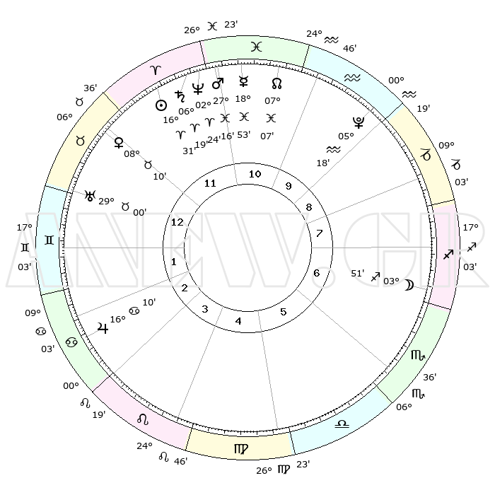 | | ΘΕΣΕΙΣ ΠΛΑΝΗΤΩΝ ΑΣΤΡΟΛΟΓΙΚΟΥ ΧΑΡΤΗ ΤΗΣ ΣΤΙΓΜΗΣ ΑΥΤΗΣ | | | | Πλανήτης | Ζώδιο | Μοίρες | Δεκαήμ. | Σε οίκο | Απόκλιση | | Ακμές των οίκων | | Ηλιος | Κριός | 16°27' | Δεύτερο | 12 | 06 N 28 | | 1ος | 20°14' | Ταύρος | | Σελήνη | Τοξότης | 03°05' | Πρώτο | 7 | 25 S 49 | | 2ος | 17°12' | Δίδυμοι | | Ερμής | Ιχθείς | 18°49' | Δεύτερο | 11 | 06 S 16 | | 3ος | 09°05' | Καρκίνος | | Αφροδίτη | Ταύρος | 08°06' | Πρώτο | 12 | 14 N 00 | | 4ος | 01°16' | Λέων | | Αρης | Ιχθείς | 27°13' | Τρίτο | 11 | 02 S 03 | | 5ος | 28°09' | Λέων | | Δίας | Καρκίνος | 16°10' | Δεύτερο | 3 | 22 N 50 | | 6ος | 04°53' | Ζυγός | | Κρόνος | Κριός | 06°19' | Πρώτο | 12 | 00 N 33 | | 7ος | 20°14' | Σκορπιός | | Ουρανός | Ταύρος | 28°60' | Τρίτο | 1 | 19 N 46 | | 8ος | 17°12' | Τοξότης | | Ποσειδώνας | Κριός | 02°24' | Πρώτο | 11 | 00 S 15 | | 9ος | 09°05' | Αιγόκερως | | Πλούτωνας | Υδροχόος | 05°18' | Πρώτο | 10 | 22 S 47 | | 10ος | 01°16' | Υδροχόος | | Β. Δεσμός | Ιχθείς | 07°08' | Πρώτο | 11 | 08 S 54 | | 11ος | 28°09' | Υδροχόος | | Ωροσκόπος | Ταύρος | 20°14' | Τρίτο | | | 12ος | 04°53' | Κριός | | Μεσουράνημα | Υδροχόος | 01°16' | Πρώτο | | | |