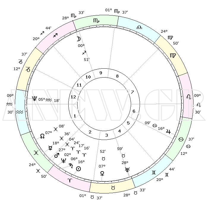 | | ΘΕΣΕΙΣ ΠΛΑΝΗΤΩΝ ΑΣΤΡΟΛΟΓΙΚΟΥ ΧΑΡΤΗ ΤΗΣ ΣΤΙΓΜΗΣ ΑΥΤΗΣ | | | | Πλανήτης | Ζώδιο | Μοίρες | Δεκαήμ. | Σε οίκο | Απόκλιση | | Ακμές των οίκων | | Ηλιος | Κριός | 16°12' | Δεύτερο | 3 | 06 N 22 | | 1ος | 11°44' | Αιγόκερως | | Σελήνη | Τοξότης | 00°02' | Πρώτο | 11 | 25 S 09 | | 2ος | 21°53' | Υδροχόος | | Ερμής | Ιχθείς | 18°32' | Δεύτερο | 2 | 06 S 21 | | 3ος | 02°08' | Κριός | | Αφροδίτη | Ταύρος | 07°47' | Πρώτο | 4 | 13 N 53 | | 4ος | 03°59' | Ταύρος | | Αρης | Ιχθείς | 27°01' | Τρίτο | 2 | 02 S 08 | | 5ος | 28°36' | Ταύρος | | Δίας | Καρκίνος | 16°08' | Δεύτερο | 7 | 22 N 50 | | 6ος | 19°53' | Δίδυμοι | | Κρόνος | Κριός | 06°17' | Πρώτο | 3 | 00 N 32 | | 7ος | 11°44' | Καρκίνος | | Ουρανός | Ταύρος | 28°59' | Τρίτο | 5 | 19 N 46 | | 8ος | 21°53' | Λέων | | Ποσειδώνας | Κριός | 02°24' | Πρώτο | 3 | 00 S 15 | | 9ος | 02°08' | Ζυγός | | Πλούτωνας | Υδροχόος | 05°18' | Πρώτο | 1 | 22 S 47 | | 10ος | 03°59' | Σκορπιός | | Β. Δεσμός | Ιχθείς | 07°08' | Πρώτο | 2 | 08 S 53 | | 11ος | 28°36' | Σκορπιός | | Ωροσκόπος | Αιγόκερως | 11°44' | Δεύτερο | | | 12ος | 19°53' | Τοξότης | | Μεσουράνημα | Σκορπιός | 03°59' | Πρώτο | | | |