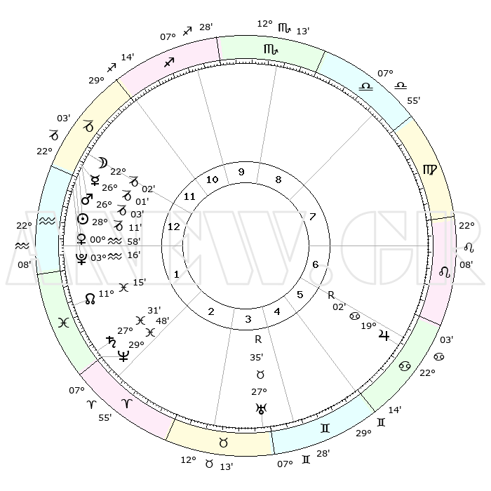 | | ΘΕΣΕΙΣ ΠΛΑΝΗΤΩΝ ΑΣΤΡΟΛΟΓΙΚΟΥ ΧΑΡΤΗ ΤΗΣ ΣΤΙΓΜΗΣ ΑΥΤΗΣ | | | | Πλανήτης | Ζώδιο | Μοίρες | Δεκαήμ. | Σε οίκο | Απόκλιση | | Ακμές των οίκων | | Ηλιος | Αιγόκερως | 28°07' | Τρίτο | 1 | 20 S 32 | | 1ος | 23°27' | Αιγόκερως | | Σελήνη | Αιγόκερως | 21°15' | Τρίτο | 12 | 25 S 33 | | 2ος | 06°19' | Ιχθείς | | Ερμής | Αιγόκερως | 25°55' | Τρίτο | 1 | 22 S 52 | | 3ος | 15°41' | Κριός | | Αφροδίτη | Υδροχόος | 00°53' | Πρώτο | 1 | 21 S 00 | | 4ος | 15°19' | Ταύρος | | Αρης | Αιγόκερως | 25°60' | Τρίτο | 1 | 21 S 55 | | 5ος | 08°37' | Δίδυμοι | | Δίας | Καρκίνος | 19°03'R | Δεύτερο | 6 | 22 N 21 | | 6ος | 29°52' | Δίδυμοι | | Κρόνος | Ιχθείς | 27°30' | Τρίτο | 2 | 03 S 01 | | 7ος | 23°27' | Καρκίνος | | Ουρανός | Ταύρος | 27°35'R | Τρίτο | 4 | 19 N 26 | | 8ος | 06°19' | Παρθένος | | Ποσειδώνας | Ιχθείς | 29°48' | Τρίτο | 2 | 01 S 18 | | 9ος | 15°41' | Ζυγός | | Πλούτωνας | Υδροχόος | 03°16' | Πρώτο | 1 | 23 S 06 | | 10ος | 15°19' | Σκορπιός | | Β. Δεσμός | Ιχθείς | 11°15' | Δεύτερο | 2 | 07 S 20 | | 11ος | 08°37' | Τοξότης | | Ωροσκόπος | Αιγόκερως | 23°27' | Τρίτο | | | 12ος | 29°52' | Τοξότης | | Μεσουράνημα | Σκορπιός | 15°19' | Δεύτερο | | | |