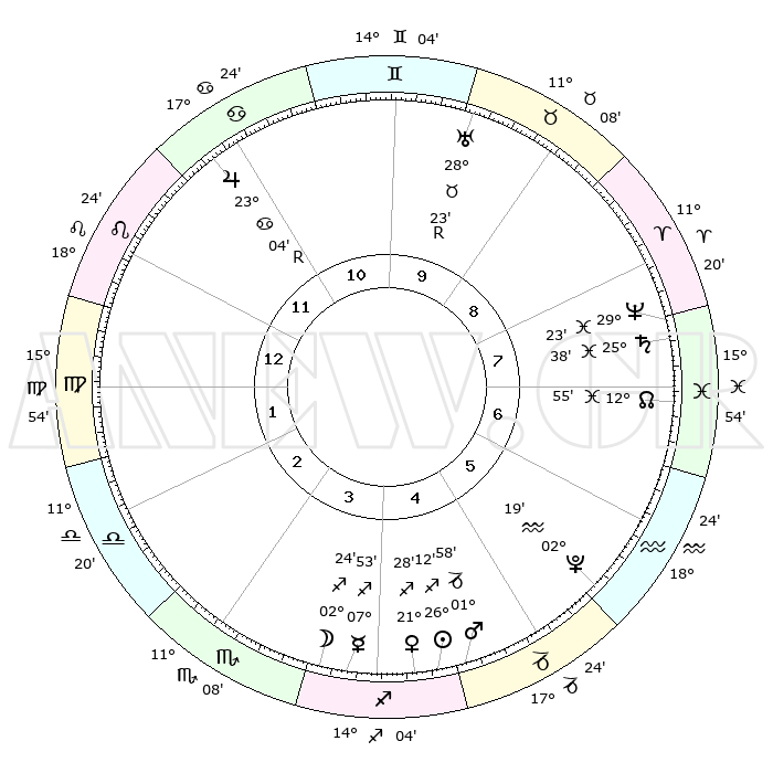 | | ΘΕΣΕΙΣ ΠΛΑΝΗΤΩΝ ΑΣΤΡΟΛΟΓΙΚΟΥ ΧΑΡΤΗ ΤΗΣ ΣΤΙΓΜΗΣ ΑΥΤΗΣ | | | | Πλανήτης | Ζώδιο | Μοίρες | Δεκαήμ. | Σε οίκο | Απόκλιση | | Ακμές των οίκων | | Ηλιος | Τοξότης | 26°07' | Τρίτο | 5 | 23 S 23 | | 1ος | 20°34' | Λέων | | Σελήνη | Τοξότης | 01°22' | Πρώτο | 4 | 25 S 14 | | 2ος | 13°27' | Παρθένος | | Ερμής | Τοξότης | 07°46' | Πρώτο | 4 | 20 S 26 | | 3ος | 11°09' | Ζυγός | | Αφροδίτη | Τοξότης | 21°21' | Τρίτο | 5 | 23 S 06 | | 4ος | 13°50' | Σκορπιός | | Αρης | Αιγόκερως | 01°54' | Πρώτο | 5 | 24 S 13 | | 5ος | 18°43' | Τοξότης | | Δίας | Καρκίνος | 23°04'R | Τρίτο | 12 | 21 N 40 | | 6ος | 21°33' | Αιγόκερως | | Κρόνος | Ιχθείς | 25°37' | Τρίτο | 8 | 03 S 51 | | 7ος | 20°34' | Υδροχόος | | Ουρανός | Ταύρος | 28°24'R | Τρίτο | 10 | 19 N 36 | | 8ος | 13°27' | Ιχθείς | | Ποσειδώνας | Ιχθείς | 29°23' | Τρίτο | 8 | 01 S 28 | | 9ος | 11°09' | Κριός | | Πλούτωνας | Υδροχόος | 02°19' | Πρώτο | 6 | 23 S 18 | | 10ος | 13°50' | Ταύρος | | Β. Δεσμός | Ιχθείς | 12°55' | Δεύτερο | 7 | 06 S 42 | | 11ος | 18°43' | Δίδυμοι | | Ωροσκόπος | Λέων | 20°34' | Τρίτο | | | 12ος | 21°33' | Καρκίνος | | Μεσουράνημα | Ταύρος | 13°50' | Δεύτερο | | | |