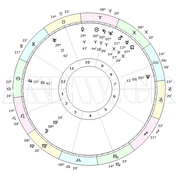| | ΘΕΣΕΙΣ ΠΛΑΝΗΤΩΝ ΑΣΤΡΟΛΟΓΙΚΟΥ ΧΑΡΤΗ ΤΗΣ ΣΤΙΓΜΗΣ ΑΥΤΗΣ | | | | Πλανήτης | Ζώδιο | Μοίρες | Δεκαήμ. | Σε οίκο | Απόκλιση | | Ακμές των οίκων | | Ηλιος | Κριός | 09°39' | Πρώτο | 11 | 03 N 49 | | 1ος | 25°17' | Δίδυμοι | | Σελήνη | Παρθένος | 06°59' | Πρώτο | 4 | 09 N 06 | | 2ος | 16°25' | Καρκίνος | | Ερμής | Ιχθείς | 12°23' | Δεύτερο | 10 | 07 S 52 | | 3ος | 07°57' | Λέων | | Αφροδίτη | Κριός | 29°37' | Τρίτο | 11 | 10 N 51 | | 4ος | 03°32' | Παρθένος | | Αρης | Ιχθείς | 21°50' | Τρίτο | 10 | 04 S 12 | | 5ος | 06°41' | Ζυγός | | Δίας | Καρκίνος | 15°41' | Δεύτερο | 1 | 22 N 53 | | 6ος | 16°55' | Σκορπιός | | Κρόνος | Κριός | 05°27' | Πρώτο | 10 | 00 N 13 | | 7ος | 25°17' | Τοξότης | | Ουρανός | Ταύρος | 28°42' | Τρίτο | 12 | 19 N 42 | | 8ος | 16°25' | Αιγόκερως | | Ποσειδώνας | Κριός | 02°09' | Πρώτο | 10 | 00 S 21 | | 9ος | 07°57' | Υδροχόος | | Πλούτωνας | Υδροχόος | 05°11' | Πρώτο | 8 | 22 S 48 | | 10ος | 03°32' | Ιχθείς | | Β. Δεσμός | Ιχθείς | 07°29' | Πρώτο | 10 | 08 S 45 | | 11ος | 06°41' | Κριός | | Ωροσκόπος | Δίδυμοι | 25°17' | Τρίτο | | | 12ος | 16°55' | Ταύρος | | Μεσουράνημα | Ιχθείς | 03°32' | Πρώτο | | | |