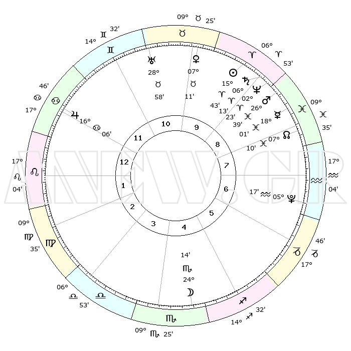 | | ΘΕΣΕΙΣ ΠΛΑΝΗΤΩΝ ΑΣΤΡΟΛΟΓΙΚΟΥ ΧΑΡΤΗ ΤΗΣ ΣΤΙΓΜΗΣ ΑΥΤΗΣ | | | | Πλανήτης | Ζώδιο | Μοίρες | Δεκαήμ. | Σε οίκο | Απόκλιση | | Ακμές των οίκων | | Ηλιος | Κριός | 15°26' | Δεύτερο | 12 | 06 N 05 | | 1ος | 06°18' | Ταύρος | | Σελήνη | Σκορπιός | 20°46' | Τρίτο | 7 | 22 S 41 | | 2ος | 06°48' | Δίδυμοι | | Ερμής | Ιχθείς | 17°43' | Δεύτερο | 11 | 06 S 35 | | 3ος | 29°45' | Δίδυμοι | | Αφροδίτη | Ταύρος | 06°50' | Πρώτο | 1 | 13 N 32 | | 4ος | 21°30' | Καρκίνος | | Αρης | Ιχθείς | 26°25' | Τρίτο | 12 | 02 S 22 | | 5ος | 16°34' | Λέων | | Δίας | Καρκίνος | 16°05' | Δεύτερο | 3 | 22 N 50 | | 6ος | 20°32' | Παρθένος | | Κρόνος | Κριός | 06°11' | Πρώτο | 12 | 00 N 30 | | 7ος | 06°18' | Σκορπιός | | Ουρανός | Ταύρος | 28°57' | Τρίτο | 1 | 19 N 45 | | 8ος | 06°48' | Τοξότης | | Ποσειδώνας | Κριός | 02°22' | Πρώτο | 12 | 00 S 16 | | 9ος | 29°45' | Τοξότης | | Πλούτωνας | Υδροχόος | 05°17' | Πρώτο | 10 | 22 S 47 | | 10ος | 21°30' | Αιγόκερως | | Β. Δεσμός | Ιχθείς | 07°11' | Πρώτο | 11 | 08 S 52 | | 11ος | 16°34' | Υδροχόος | | Ωροσκόπος | Ταύρος | 06°18' | Πρώτο | | | 12ος | 20°32' | Ιχθείς | | Μεσουράνημα | Αιγόκερως | 21°30' | Τρίτο | | | |