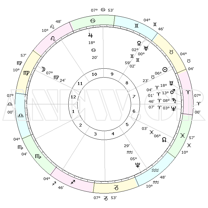 | | ΘΕΣΕΙΣ ΠΛΑΝΗΤΩΝ ΑΣΤΡΟΛΟΓΙΚΟΥ ΧΑΡΤΗ ΤΗΣ ΣΤΙΓΜΗΣ ΑΥΤΗΣ | | | | Πλανήτης | Ζώδιο | Μοίρες | Δεκαήμ. | Σε οίκο | Απόκλιση | | Ακμές των οίκων | | Ηλιος | Ταύρος | 06°20' | Πρώτο | 8 | 13 N 38 | | 1ος | 18°47' | Παρθένος | | Σελήνη | Παρθένος | 06°36' | Πρώτο | 12 | 09 N 09 | | 2ος | 14°28' | Ζυγός | | Ερμής | Κριός | 17°58' | Δεύτερο | 8 | 04 N 53 | | 3ος | 14°26' | Σκορπιός | | Αφροδίτη | Δίδυμοι | 02°54' | Πρώτο | 9 | 21 N 25 | | 4ος | 17°22' | Τοξότης | | Αρης | Κριός | 12°58' | Δεύτερο | 7 | 04 N 17 | | 5ος | 20°35' | Αιγόκερως | | Δίας | Καρκίνος | 18°19' | Δεύτερο | 10 | 22 N 34 | | 6ος | 21°27' | Υδροχόος | | Κρόνος | Κριός | 08°45' | Πρώτο | 7 | 01 N 29 | | 7ος | 18°47' | Ιχθείς | | Ουρανός | Δίδυμοι | 00°02' | Πρώτο | 9 | 19 N 59 | | 8ος | 14°28' | Κριός | | Ποσειδώνας | Κριός | 03°07' | Πρώτο | 7 | 00 N 02 | | 9ος | 14°26' | Ταύρος | | Πλούτωνας | Υδροχόος | 05°29' | Πρώτο | 5 | 22 S 48 | | 10ος | 17°22' | Δίδυμοι | | Β. Δεσμός | Ιχθείς | 06°03' | Πρώτο | 6 | 09 S 17 | | 11ος | 20°35' | Καρκίνος | | Ωροσκόπος | Παρθένος | 18°47' | Δεύτερο | | | 12ος | 21°27' | Λέων | | Μεσουράνημα | Δίδυμοι | 17°22' | Δεύτερο | | | |