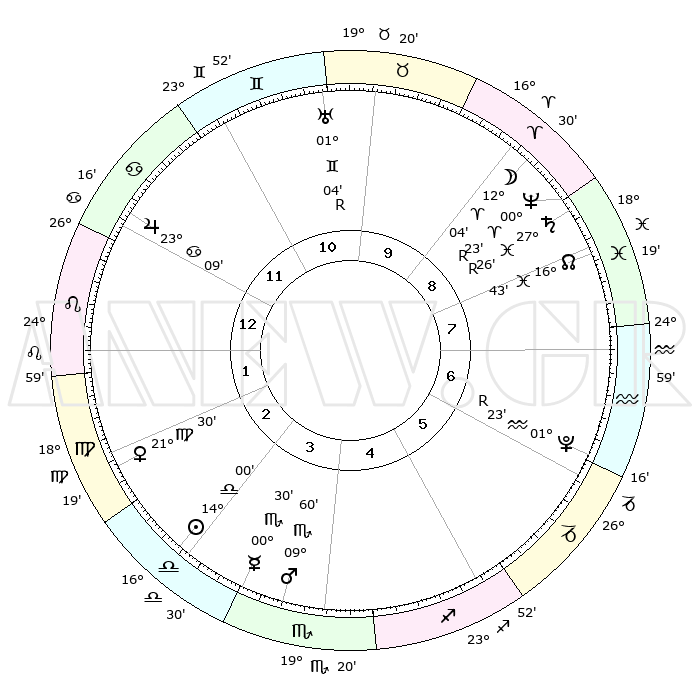 | ΘΕΣΕΙΣ ΠΛΑΝΗΤΩΝ ΑΣΤΡΟΛΟΓΙΚΟΥ ΧΑΡΤΗ ΤΗΣ ΣΤΙΓΜΗΣ ΑΥΤΗΣ | | Πλανήτης | Ζώδιο | Μοίρες | Δεκαήμ. | Σε οίκο | Απόκλιση | | Ακμές των οίκων | Ηλιος | Ζυγός | 13°55' | Δεύτερο | 3 | 05 S 29 | | 1ος | 00°37' | Λέων | Σελήνη | Κριός | 10°49' | Δεύτερο | 9 | 06 N 08 | | 2ος | 21°42' | Λέων | Ερμής | Σκορπιός | 00°23' | Πρώτο | 4 | 12 S 22 | | 3ος | 16°50' | Παρθένος | Αφροδίτη | Παρθένος | 21°24' | Τρίτο | 3 | 04 N 42 | | 4ος | 17°56' | Ζυγός | Αρης | Σκορπιός | 09°56' | Πρώτο | 4 | 14 S 55 | | 5ος | 23°58' | Σκορπιός | Δίας | Καρκίνος | 23°09' | Τρίτο | 12 | 21 N 29 | | 6ος | 29°34' | Τοξότης | Κρόνος | Ιχθείς | 27°27'R | Τρίτο | 9 | 03 S 19 | | 7ος | 00°37' | Υδροχόος | Ουρανός | Δίδυμοι | 01°04'R | Πρώτο | 11 | 20 N 10 | | 8ος | 21°42' | Υδροχόος | Ποσειδώνας | Κριός | 00°23'R | Πρώτο | 9 | 01 S 06 | | 9ος | 16°50' | Ιχθείς | Πλούτωνας | Υδροχόος | 01°23'R | Πρώτο | 7 | 23 S 32 | | 10ος | 17°56' | Κριός | Β. Δεσμός | Ιχθείς | 16°44' | Δεύτερο | 8 | 05 S 14 | | 11ος | 23°58' | Ταύρος | Ωροσκόπος | Λέων | 00°37' | Πρώτο | | | 12ος | 29°34' | Δίδυμοι | Μεσουράνημα | Κριός | 17°56' | Δεύτερο | | | |