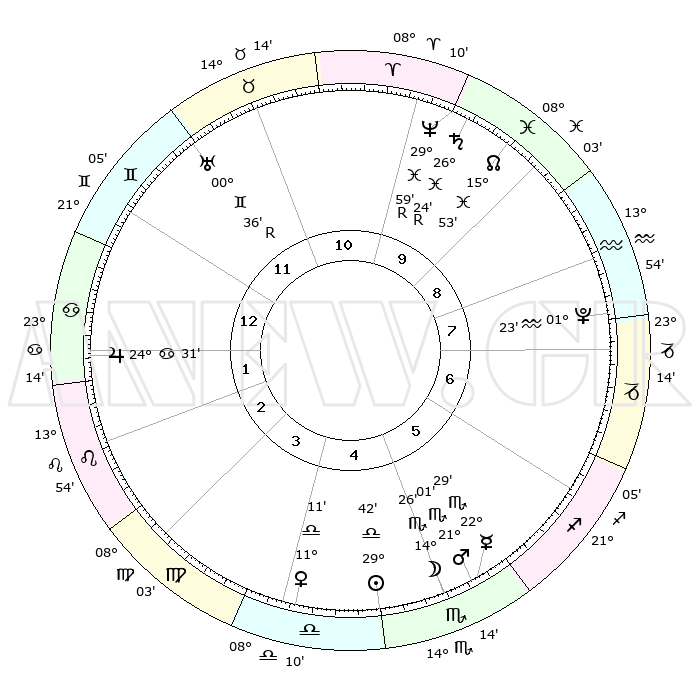 | ΘΕΣΕΙΣ ΠΛΑΝΗΤΩΝ ΑΣΤΡΟΛΟΓΙΚΟΥ ΧΑΡΤΗ ΤΗΣ ΣΤΙΓΜΗΣ ΑΥΤΗΣ | | Πλανήτης | Ζώδιο | Μοίρες | Δεκαήμ. | Σε οίκο | Απόκλιση | | Ακμές των οίκων | Ηλιος | Ζυγός | 29°36' | Τρίτο | 5 | 11 S 20 | | 1ος | 16°38' | Δίδυμοι | Σελήνη | Σκορπιός | 13°06' | Δεύτερο | 6 | 19 S 48 | | 2ος | 08°41' | Καρκίνος | Ερμής | Σκορπιός | 22°20' | Τρίτο | 6 | 20 S 44 | | 3ος | 29°56' | Καρκίνος | Αφροδίτη | Ζυγός | 11°02' | Δεύτερο | 5 | 02 S 57 | | 4ος | 24°20' | Λέων | Αρης | Σκορπιός | 20°56' | Τρίτο | 6 | 18 S 16 | | 5ος | 25°52' | Παρθένος | Δίας | Καρκίνος | 24°31' | Τρίτο | 2 | 21 N 17 | | 6ος | 06°04' | Σκορπιός | Κρόνος | Ιχθείς | 26°24'R | Τρίτο | 11 | 03 S 43 | | 7ος | 16°38' | Τοξότης | Ουρανός | Δίδυμοι | 00°36'R | Πρώτο | 12 | 20 N 04 | | 8ος | 08°41' | Αιγόκερως | Ποσειδώνας | Ιχθείς | 29°59'R | Τρίτο | 11 | 01 S 16 | | 9ος | 29°56' | Αιγόκερως | Πλούτωνας | Υδροχόος | 01°23' | Πρώτο | 9 | 23 S 32 | | 10ος | 24°20' | Υδροχόος | Β. Δεσμός | Ιχθείς | 15°53' | Δεύτερο | 10 | 05 S 34 | | 11ος | 25°52' | Ιχθείς | Ωροσκόπος | Δίδυμοι | 16°38' | Δεύτερο | | | 12ος | 06°04' | Ταύρος | Μεσουράνημα | Υδροχόος | 24°20' | Τρίτο | | | |