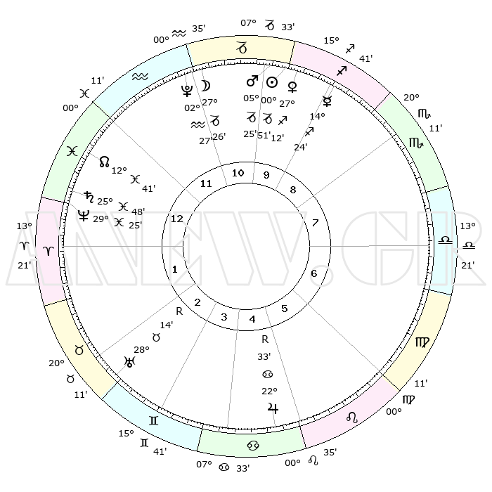 | | ΘΕΣΕΙΣ ΠΛΑΝΗΤΩΝ ΑΣΤΡΟΛΟΓΙΚΟΥ ΧΑΡΤΗ ΤΗΣ ΣΤΙΓΜΗΣ ΑΥΤΗΣ | | | | Πλανήτης | Ζώδιο | Μοίρες | Δεκαήμ. | Σε οίκο | Απόκλιση | | Ακμές των οίκων | | Ηλιος | Αιγόκερως | 00°46' | Πρώτο | 10 | 23 S 26 | | 1ος | 26°02' | Υδροχόος | | Σελήνη | Αιγόκερως | 26°25' | Τρίτο | 12 | 24 S 22 | | 2ος | 11°42' | Κριός | | Ερμής | Τοξότης | 14°17' | Δεύτερο | 10 | 21 S 55 | | 3ος | 15°12' | Ταύρος | | Αφροδίτη | Τοξότης | 27°06' | Τρίτο | 10 | 23 S 32 | | 4ος | 10°01' | Δίδυμοι | | Αρης | Αιγόκερως | 05°21' | Πρώτο | 11 | 24 S 09 | | 5ος | 01°44' | Καρκίνος | | Δίας | Καρκίνος | 22°33'R | Τρίτο | 5 | 21 N 45 | | 6ος | 24°54' | Καρκίνος | | Κρόνος | Ιχθείς | 25°48' | Τρίτο | 1 | 03 S 46 | | 7ος | 26°02' | Λέων | | Ουρανός | Ταύρος | 28°14'R | Τρίτο | 3 | 19 N 34 | | 8ος | 11°42' | Ζυγός | | Ποσειδώνας | Ιχθείς | 29°25' | Τρίτο | 1 | 01 S 28 | | 9ος | 15°12' | Σκορπιός | | Πλούτωνας | Υδροχόος | 02°27' | Πρώτο | 12 | 23 S 17 | | 10ος | 10°01' | Τοξότης | | Β. Δεσμός | Ιχθείς | 12°41' | Δεύτερο | 1 | 06 S 48 | | 11ος | 01°44' | Αιγόκερως | | Ωροσκόπος | Υδροχόος | 26°02' | Τρίτο | | | 12ος | 24°54' | Αιγόκερως | | Μεσουράνημα | Τοξότης | 10°01' | Δεύτερο | | | |