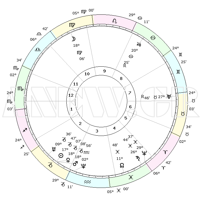 | | ΘΕΣΕΙΣ ΠΛΑΝΗΤΩΝ ΑΣΤΡΟΛΟΓΙΚΟΥ ΧΑΡΤΗ ΤΗΣ ΣΤΙΓΜΗΣ ΑΥΤΗΣ | | | | Πλανήτης | Ζώδιο | Μοίρες | Δεκαήμ. | Σε οίκο | Απόκλιση | | Ακμές των οίκων | | Ηλιος | Αιγόκερως | 16°43' | Δεύτερο | 3 | 22 S 23 | | 1ος | 11°60' | Σκορπιός | | Σελήνη | Παρθένος | 04°24' | Πρώτο | 10 | 10 N 23 | | 2ος | 11°13' | Τοξότης | | Ερμής | Αιγόκερως | 07°58' | Πρώτο | 2 | 24 S 22 | | 3ος | 14°20' | Αιγόκερως | | Αφροδίτη | Αιγόκερως | 16°48' | Δεύτερο | 3 | 23 S 06 | | 4ος | 19°24' | Υδροχόος | | Αρης | Αιγόκερως | 17°20' | Δεύτερο | 3 | 23 S 14 | | 5ος | 21°59' | Ιχθείς | | Δίας | Καρκίνος | 20°33'R | Τρίτο | 9 | 22 N 07 | | 6ος | 19°23' | Κριός | | Κρόνος | Ιχθείς | 26°40' | Τρίτο | 5 | 03 S 23 | | 7ος | 11°60' | Ταύρος | | Ουρανός | Ταύρος | 27°47'R | Τρίτο | 7 | 19 N 28 | | 8ος | 11°13' | Δίδυμοι | | Ποσειδώνας | Ιχθείς | 29°36' | Τρίτο | 5 | 01 S 23 | | 9ος | 14°20' | Καρκίνος | | Πλούτωνας | Υδροχόος | 02°54' | Πρώτο | 3 | 23 S 11 | | 10ος | 19°24' | Λέων | | Β. Δεσμός | Ιχθείς | 11°51' | Δεύτερο | 4 | 07 S 07 | | 11ος | 21°59' | Παρθένος | | Ωροσκόπος | Σκορπιός | 11°60' | Δεύτερο | | | 12ος | 19°23' | Ζυγός | | Μεσουράνημα | Λέων | 19°24' | Δεύτερο | | | |