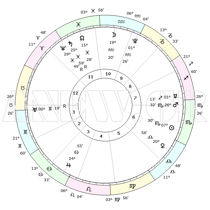 | | ΘΕΣΕΙΣ ΠΛΑΝΗΤΩΝ ΑΣΤΡΟΛΟΓΙΚΟΥ ΧΑΡΤΗ ΤΗΣ ΣΤΙΓΜΗΣ ΑΥΤΗΣ | | | | Πλανήτης | Ζώδιο | Μοίρες | Δεκαήμ. | Σε οίκο | Απόκλιση | | Ακμές των οίκων | | Ηλιος | Σκορπιός | 07°23' | Πρώτο | 8 | 13 S 58 | | 1ος | 23°12' | Ιχθείς | | Σελήνη | Υδροχόος | 17°48' | Δεύτερο | 12 | 17 S 53 | | 2ος | 05°03' | Ταύρος | | Ερμής | Τοξότης | 01°06' | Πρώτο | 8 | 23 S 11 | | 3ος | 03°32' | Δίδυμοι | | Αφροδίτη | Ζυγός | 20°47' | Τρίτο | 7 | 06 S 44 | | 4ος | 26°10' | Δίδυμοι | | Αρης | Σκορπιός | 26°27' | Τρίτο | 8 | 19 S 44 | | 5ος | 18°13' | Καρκίνος | | Δίας | Καρκίνος | 24°55' | Τρίτο | 5 | 21 N 13 | | 6ος | 14°37' | Λέων | | Κρόνος | Ιχθείς | 25°59'R | Τρίτο | 1 | 03 S 52 | | 7ος | 23°12' | Παρθένος | | Ουρανός | Δίδυμοι | 00°20'R | Πρώτο | 2 | 20 N 01 | | 8ος | 05°03' | Σκορπιός | | Ποσειδώνας | Ιχθείς | 29°49'R | Τρίτο | 1 | 01 S 20 | | 9ος | 03°32' | Τοξότης | | Πλούτωνας | Υδροχόος | 01°26' | Πρώτο | 11 | 23 S 31 | | 10ος | 26°11' | Τοξότης | | Β. Δεσμός | Ιχθείς | 15°29' | Δεύτερο | 12 | 05 S 43 | | 11ος | 18°13' | Αιγόκερως | | Ωροσκόπος | Ιχθείς | 23°12' | Τρίτο | | | 12ος | 14°37' | Υδροχόος | | Μεσουράνημα | Τοξότης | 26°11' | Τρίτο | | | |