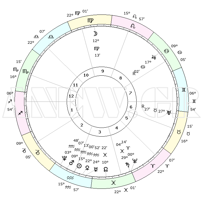 | | ΘΕΣΕΙΣ ΠΛΑΝΗΤΩΝ ΑΣΤΡΟΛΟΓΙΚΟΥ ΧΑΡΤΗ ΤΗΣ ΣΤΙΓΜΗΣ ΑΥΤΗΣ | | | | Πλανήτης | Ζώδιο | Μοίρες | Δεκαήμ. | Σε οίκο | Απόκλιση | | Ακμές των οίκων | | Ηλιος | Υδροχόος | 15°10' | Δεύτερο | 3 | 16 S 17 | | 1ος | 20°51' | Σκορπιός | | Σελήνη | Παρθένος | 11°29' | Δεύτερο | 10 | 07 N 03 | | 2ος | 20°53' | Τοξότης | | Ερμής | Υδροχόος | 24°46' | Τρίτο | 3 | 14 S 49 | | 3ος | 25°10' | Αιγόκερως | | Αφροδίτη | Υδροχόος | 21°56' | Τρίτο | 3 | 15 S 31 | | 4ος | 00°49' | Ιχθείς | | Αρης | Υδροχόος | 09°04' | Πρώτο | 3 | 19 S 00 | | 5ος | 02°49' | Κριός | | Δίας | Καρκίνος | 17°02'R | Δεύτερο | 8 | 22 N 39 | | 6ος | 29°06' | Κριός | | Κρόνος | Ιχθείς | 29°03' | Τρίτο | 4 | 02 S 22 | | 7ος | 20°51' | Ταύρος | | Ουρανός | Ταύρος | 27°27'R | Τρίτο | 7 | 19 N 24 | | 8ος | 20°53' | Δίδυμοι | | Ποσειδώνας | Κριός | 00°14' | Πρώτο | 4 | 01 S 07 | | 9ος | 25°10' | Καρκίνος | | Πλούτωνας | Υδροχόος | 03°48' | Πρώτο | 3 | 23 S 00 | | 10ος | 00°49' | Παρθένος | | Β. Δεσμός | Ιχθείς | 10°22' | Δεύτερο | 4 | 07 S 41 | | 11ος | 02°49' | Ζυγός | | Ωροσκόπος | Σκορπιός | 20°51' | Τρίτο | | | 12ος | 29°06' | Ζυγός | | Μεσουράνημα | Παρθένος | 00°49' | Πρώτο | | | |