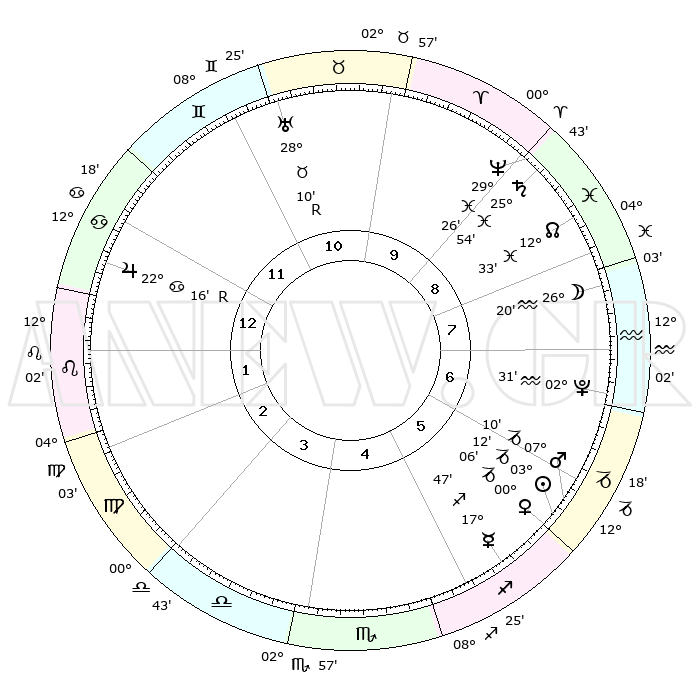 | | ΘΕΣΕΙΣ ΠΛΑΝΗΤΩΝ ΑΣΤΡΟΛΟΓΙΚΟΥ ΧΑΡΤΗ ΤΗΣ ΣΤΙΓΜΗΣ ΑΥΤΗΣ | | | | Πλανήτης | Ζώδιο | Μοίρες | Δεκαήμ. | Σε οίκο | Απόκλιση | | Ακμές των οίκων | | Ηλιος | Αιγόκερως | 03°08' | Πρώτο | 6 | 23 S 24 | | 1ος | 22°46' | Καρκίνος | | Σελήνη | Υδροχόος | 25°29' | Τρίτο | 8 | 14 S 19 | | 2ος | 13°24' | Λέων | | Ερμής | Τοξότης | 17°41' | Δεύτερο | 5 | 22 S 34 | | 3ος | 07°30' | Παρθένος | | Αφροδίτη | Αιγόκερως | 00°01' | Πρώτο | 6 | 23 S 39 | | 4ος | 07°32' | Ζυγός | | Αρης | Αιγόκερως | 07°07' | Πρώτο | 6 | 24 S 05 | | 5ος | 13°36' | Σκορπιός | | Δίας | Καρκίνος | 22°17'R | Τρίτο | 12 | 21 N 49 | | 6ος | 20°32' | Τοξότης | | Κρόνος | Ιχθείς | 25°54' | Τρίτο | 9 | 03 S 44 | | 7ος | 22°46' | Αιγόκερως | | Ουρανός | Ταύρος | 28°10'R | Τρίτο | 11 | 19 N 33 | | 8ος | 13°24' | Υδροχόος | | Ποσειδώνας | Ιχθείς | 29°26' | Τρίτο | 9 | 01 S 27 | | 9ος | 07°30' | Ιχθείς | | Πλούτωνας | Υδροχόος | 02°30' | Πρώτο | 7 | 23 S 16 | | 10ος | 07°32' | Κριός | | Β. Δεσμός | Ιχθείς | 12°33' | Δεύτερο | 9 | 06 S 51 | | 11ος | 13°36' | Ταύρος | | Ωροσκόπος | Καρκίνος | 22°46' | Τρίτο | | | 12ος | 20°32' | Δίδυμοι | | Μεσουράνημα | Κριός | 07°32' | Πρώτο | | | |