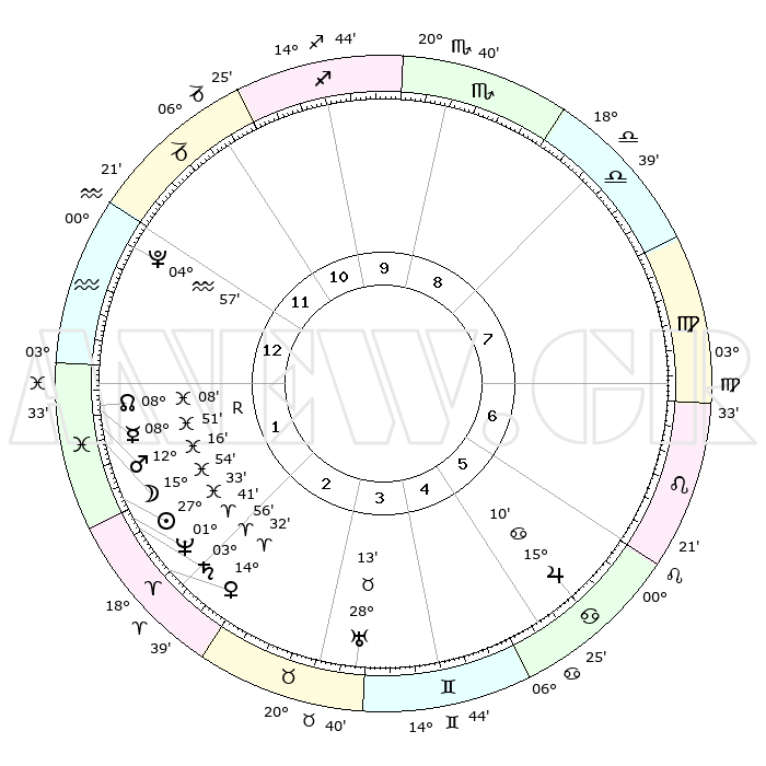 | | ΘΕΣΕΙΣ ΠΛΑΝΗΤΩΝ ΑΣΤΡΟΛΟΓΙΚΟΥ ΧΑΡΤΗ ΤΗΣ ΣΤΙΓΜΗΣ ΑΥΤΗΣ | | | | Πλανήτης | Ζώδιο | Μοίρες | Δεκαήμ. | Σε οίκο | Απόκλιση | | Ακμές των οίκων | | Ηλιος | Ιχθείς | 27°29' | Τρίτο | 2 | 01 S 00 | | 1ος | 01°14' | Υδροχόος | | Σελήνη | Ιχθείς | 15°00' | Δεύτερο | 1 | 05 S 24 | | 2ος | 15°31' | Ιχθείς | | Ερμής | Ιχθείς | 08°52'R | Πρώτο | 1 | 06 S 42 | | 3ος | 23°46' | Κριός | | Αφροδίτη | Κριός | 14°28' | Δεύτερο | 2 | 04 N 49 | | 4ος | 22°02' | Ταύρος | | Αρης | Ιχθείς | 12°12' | Δεύτερο | 1 | 07 S 59 | | 5ος | 14°42' | Δίδυμοι | | Δίας | Καρκίνος | 15°10' | Δεύτερο | 6 | 22 N 56 | | 6ος | 06°10' | Καρκίνος | | Κρόνος | Κριός | 03°56' | Πρώτο | 2 | 00 S 23 | | 7ος | 01°13' | Λέων | | Ουρανός | Ταύρος | 28°13' | Τρίτο | 4 | 19 N 35 | | 8ος | 15°31' | Παρθένος | | Ποσειδώνας | Κριός | 01°41' | Πρώτο | 2 | 00 S 32 | | 9ος | 23°46' | Ζυγός | | Πλούτωνας | Υδροχόος | 04°57' | Πρώτο | 1 | 22 S 49 | | 10ος | 22°02' | Σκορπιός | | Β. Δεσμός | Ιχθείς | 08°08' | Πρώτο | 1 | 08 S 31 | | 11ος | 14°42' | Τοξότης | | Ωροσκόπος | Υδροχόος | 01°14' | Πρώτο | | | 12ος | 06°10' | Αιγόκερως | | Μεσουράνημα | Σκορπιός | 22°02' | Τρίτο | | | |