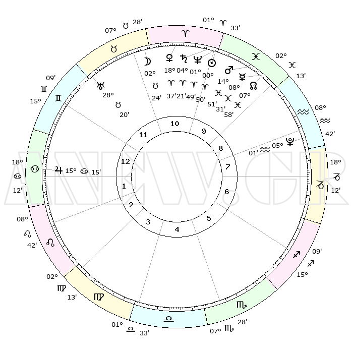 | | ΘΕΣΕΙΣ ΠΛΑΝΗΤΩΝ ΑΣΤΡΟΛΟΓΙΚΟΥ ΧΑΡΤΗ ΤΗΣ ΣΤΙΓΜΗΣ ΑΥΤΗΣ | | | | Πλανήτης | Ζώδιο | Μοίρες | Δεκαήμ. | Σε οίκο | Απόκλιση | | Ακμές των οίκων | | Ηλιος | Κριός | 00°46' | Πρώτο | 10 | 00 N 18 | | 1ος | 26°50' | Δίδυμοι | | Σελήνη | Ταύρος | 01°26' | Πρώτο | 11 | 15 N 52 | | 2ος | 17°51' | Καρκίνος | | Ερμής | Ιχθείς | 08°31' | Πρώτο | 10 | 07 S 35 | | 3ος | 09°28' | Λέων | | Αφροδίτη | Κριός | 18°32' | Δεύτερο | 11 | 06 N 29 | | 4ος | 05°17' | Παρθένος | | Αρης | Ιχθείς | 14°48' | Δεύτερο | 10 | 06 S 59 | | 5ος | 08°42' | Ζυγός | | Δίας | Καρκίνος | 15°15' | Δεύτερο | 1 | 22 N 55 | | 6ος | 18°53' | Σκορπιός | | Κρόνος | Κριός | 04°20' | Πρώτο | 10 | 00 S 14 | | 7ος | 26°50' | Τοξότης | | Ουρανός | Ταύρος | 28°20' | Τρίτο | 12 | 19 N 37 | | 8ος | 17°51' | Αιγόκερως | | Ποσειδώνας | Κριός | 01°48' | Πρώτο | 10 | 00 S 29 | | 9ος | 09°28' | Υδροχόος | | Πλούτωνας | Υδροχόος | 05°01' | Πρώτο | 8 | 22 S 48 | | 10ος | 05°17' | Ιχθείς | | Β. Δεσμός | Ιχθείς | 07°58' | Πρώτο | 10 | 08 S 35 | | 11ος | 08°42' | Κριός | | Ωροσκόπος | Δίδυμοι | 26°50' | Τρίτο | | | 12ος | 18°53' | Ταύρος | | Μεσουράνημα | Ιχθείς | 05°17' | Πρώτο | | | |