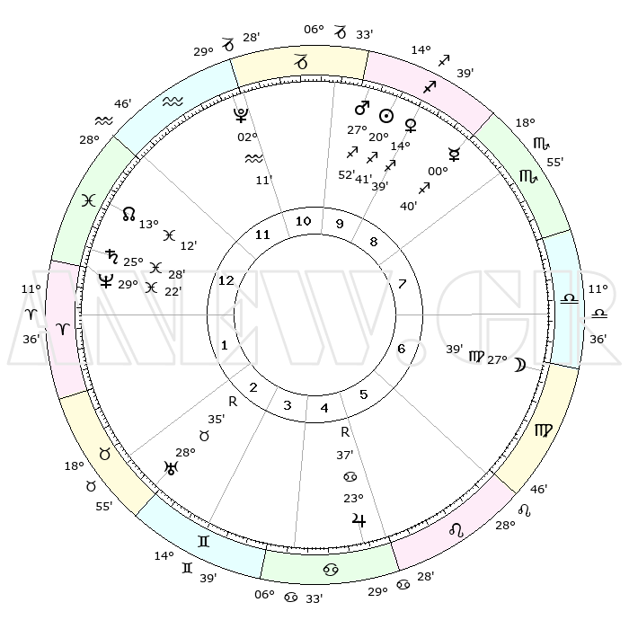 | | ΘΕΣΕΙΣ ΠΛΑΝΗΤΩΝ ΑΣΤΡΟΛΟΓΙΚΟΥ ΧΑΡΤΗ ΤΗΣ ΣΤΙΓΜΗΣ ΑΥΤΗΣ | | | | Πλανήτης | Ζώδιο | Μοίρες | Δεκαήμ. | Σε οίκο | Απόκλιση | | Ακμές των οίκων | | Ηλιος | Τοξότης | 20°36' | Τρίτο | 10 | 23 S 06 | | 1ος | 23°45' | Υδροχόος | | Σελήνη | Παρθένος | 26°36' | Τρίτο | 7 | 00 N 16 | | 2ος | 09°30' | Κριός | | Ερμής | Τοξότης | 00°34' | Πρώτο | 9 | 18 S 27 | | 3ος | 13°28' | Ταύρος | | Αφροδίτη | Τοξότης | 14°32' | Δεύτερο | 10 | 22 S 16 | | 4ος | 08°32' | Δίδυμοι | | Αρης | Τοξότης | 27°49' | Τρίτο | 10 | 24 S 10 | | 5ος | 00°17' | Καρκίνος | | Δίας | Καρκίνος | 23°37'R | Τρίτο | 6 | 21 N 33 | | 6ος | 23°14' | Καρκίνος | | Κρόνος | Ιχθείς | 25°28' | Τρίτο | 1 | 03 S 56 | | 7ος | 23°45' | Λέων | | Ουρανός | Ταύρος | 28°36'R | Τρίτο | 3 | 19 N 39 | | 8ος | 09°30' | Ζυγός | | Ποσειδώνας | Ιχθείς | 29°22' | Τρίτο | 1 | 01 S 29 | | 9ος | 13°28' | Σκορπιός | | Πλούτωνας | Υδροχόος | 02°10' | Πρώτο | 12 | 23 S 20 | | 10ος | 08°32' | Τοξότης | | Β. Δεσμός | Ιχθείς | 13°12' | Δεύτερο | 1 | 06 S 36 | | 11ος | 00°17' | Αιγόκερως | | Ωροσκόπος | Υδροχόος | 23°45' | Τρίτο | | | 12ος | 23°14' | Αιγόκερως | | Μεσουράνημα | Τοξότης | 08°32' | Πρώτο | | | |