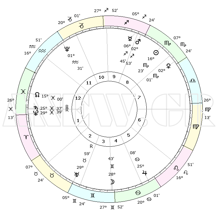 | | ΘΕΣΕΙΣ ΠΛΑΝΗΤΩΝ ΑΣΤΡΟΛΟΓΙΚΟΥ ΧΑΡΤΗ ΤΗΣ ΣΤΙΓΜΗΣ ΑΥΤΗΣ | | | | Πλανήτης | Ζώδιο | Μοίρες | Δεκαήμ. | Σε οίκο | Απόκλιση | | Ακμές των οίκων | | Ηλιος | Σκορπιός | 16°09' | Δεύτερο | 11 | 16 S 40 | | 1ος | 19°07' | Τοξότης | | Σελήνη | Δίδυμοι | 25°25' | Τρίτο | 7 | 28 N 22 | | 2ος | 23°40' | Αιγόκερως | | Ερμής | Τοξότης | 06°43' | Πρώτο | 12 | 23 S 56 | | 3ος | 02°29' | Ιχθείς | | Αφροδίτη | Σκορπιός | 01°44' | Πρώτο | 10 | 10 S 48 | | 4ος | 07°51' | Κριός | | Αρης | Τοξότης | 02°43' | Πρώτο | 12 | 21 S 09 | | 5ος | 05°58' | Ταύρος | | Δίας | Καρκίνος | 25°08' | Τρίτο | 8 | 21 N 12 | | 6ος | 28°41' | Ταύρος | | Κρόνος | Ιχθείς | 25°38'R | Τρίτο | 3 | 03 S 59 | | 7ος | 19°07' | Δίδυμοι | | Ουρανός | Ταύρος | 29°59'R | Τρίτο | 6 | 19 N 56 | | 8ος | 23°40' | Καρκίνος | | Ποσειδώνας | Ιχθείς | 29°39'R | Τρίτο | 3 | 01 S 23 | | 9ος | 02°29' | Παρθένος | | Πλούτωνας | Υδροχόος | 01°31' | Πρώτο | 2 | 23 S 30 | | 10ος | 07°51' | Ζυγός | | Β. Δεσμός | Ιχθείς | 15°01' | Δεύτερο | 3 | 05 S 54 | | 11ος | 05°58' | Σκορπιός | | Ωροσκόπος | Τοξότης | 19°07' | Δεύτερο | | | 12ος | 28°41' | Σκορπιός | | Μεσουράνημα | Ζυγός | 07°51' | Πρώτο | | | |