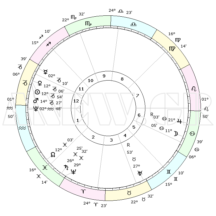 | | ΘΕΣΕΙΣ ΠΛΑΝΗΤΩΝ ΑΣΤΡΟΛΟΓΙΚΟΥ ΧΑΡΤΗ ΤΗΣ ΣΤΙΓΜΗΣ ΑΥΤΗΣ | | | | Πλανήτης | Ζώδιο | Μοίρες | Δεκαήμ. | Σε οίκο | Απόκλιση | | Ακμές των οίκων | | Ηλιος | Αιγόκερως | 12°47' | Δεύτερο | 1 | 22 S 49 | | 1ος | 21°06' | Τοξότης | | Σελήνη | Καρκίνος | 09°24' | Πρώτο | 7 | 27 N 32 | | 2ος | 26°06' | Αιγόκερως | | Ερμής | Αιγόκερως | 01°60' | Πρώτο | 1 | 24 S 13 | | 3ος | 05°12' | Ιχθείς | | Αφροδίτη | Αιγόκερως | 11°57' | Δεύτερο | 1 | 23 S 29 | | 4ος | 10°21' | Κριός | | Αρης | Αιγόκερως | 14°22' | Δεύτερο | 1 | 23 S 33 | | 5ος | 08°08' | Ταύρος | | Δίας | Καρκίνος | 21°04'R | Τρίτο | 7 | 22 N 01 | | 6ος | 00°39' | Δίδυμοι | | Κρόνος | Ιχθείς | 26°25' | Τρίτο | 3 | 03 S 30 | | 7ος | 21°06' | Δίδυμοι | | Ουρανός | Ταύρος | 27°53'R | Τρίτο | 5 | 19 N 29 | | 8ος | 26°06' | Καρκίνος | | Ποσειδώνας | Ιχθείς | 29°32' | Τρίτο | 3 | 01 S 24 | | 9ος | 05°12' | Παρθένος | | Πλούτωνας | Υδροχόος | 02°47' | Πρώτο | 2 | 23 S 12 | | 10ος | 10°21' | Ζυγός | | Β. Δεσμός | Ιχθείς | 12°03' | Δεύτερο | 3 | 07 S 02 | | 11ος | 08°08' | Σκορπιός | | Ωροσκόπος | Τοξότης | 21°06' | Τρίτο | | | 12ος | 00°39' | Τοξότης | | Μεσουράνημα | Ζυγός | 10°21' | Δεύτερο | | | |