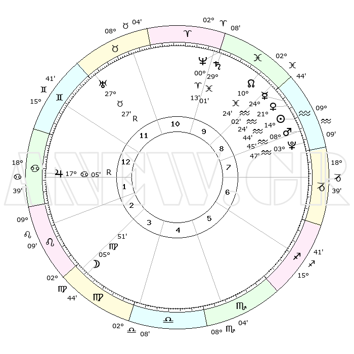 | | ΘΕΣΕΙΣ ΠΛΑΝΗΤΩΝ ΑΣΤΡΟΛΟΓΙΚΟΥ ΧΑΡΤΗ ΤΗΣ ΣΤΙΓΜΗΣ ΑΥΤΗΣ | | | | Πλανήτης | Ζώδιο | Μοίρες | Δεκαήμ. | Σε οίκο | Απόκλιση | | Ακμές των οίκων | | Ηλιος | Υδροχόος | 14°39' | Δεύτερο | 9 | 16 S 26 | | 1ος | 24°01' | Δίδυμοι | | Σελήνη | Παρθένος | 04°48' | Πρώτο | 4 | 10 N 07 | | 2ος | 15°16' | Καρκίνος | | Ερμής | Υδροχόος | 23°54' | Τρίτο | 9 | 15 S 09 | | 3ος | 06°44' | Λέων | | Αφροδίτη | Υδροχόος | 21°19' | Τρίτο | 9 | 15 S 43 | | 4ος | 02°09' | Παρθένος | | Αρης | Υδροχόος | 08°41' | Πρώτο | 9 | 19 S 06 | | 5ος | 05°04' | Ζυγός | | Δίας | Καρκίνος | 17°05'R | Δεύτερο | 2 | 22 N 39 | | 6ος | 15°21' | Σκορπιός | | Κρόνος | Ιχθείς | 29°00' | Τρίτο | 10 | 02 S 23 | | 7ος | 24°01' | Τοξότης | | Ουρανός | Ταύρος | 27°27'R | Τρίτο | 12 | 19 N 24 | | 8ος | 15°16' | Αιγόκερως | | Ποσειδώνας | Κριός | 00°13' | Πρώτο | 10 | 01 S 07 | | 9ος | 06°44' | Υδροχόος | | Πλούτωνας | Υδροχόος | 03°47' | Πρώτο | 8 | 23 S 00 | | 10ος | 02°09' | Ιχθείς | | Β. Δεσμός | Ιχθείς | 10°24' | Δεύτερο | 10 | 07 S 40 | | 11ος | 05°04' | Κριός | | Ωροσκόπος | Δίδυμοι | 24°01' | Τρίτο | | | 12ος | 15°21' | Ταύρος | | Μεσουράνημα | Ιχθείς | 02°09' | Πρώτο | | | |