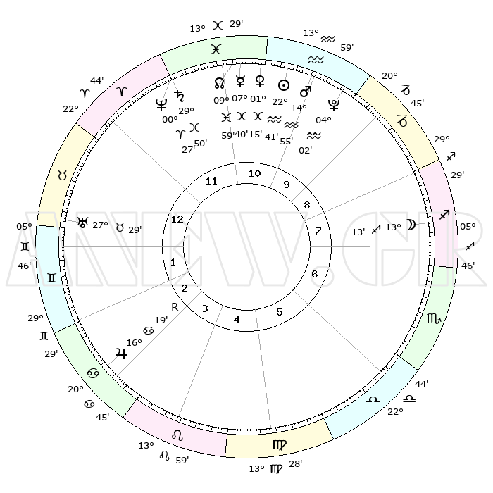 | | ΘΕΣΕΙΣ ΠΛΑΝΗΤΩΝ ΑΣΤΡΟΛΟΓΙΚΟΥ ΧΑΡΤΗ ΤΗΣ ΣΤΙΓΜΗΣ ΑΥΤΗΣ | | | | Πλανήτης | Ζώδιο | Μοίρες | Δεκαήμ. | Σε οίκο | Απόκλιση | | Ακμές των οίκων | | Ηλιος | Υδροχόος | 22°37' | Τρίτο | 11 | 13 S 58 | | 1ος | 02°53' | Ταύρος | | Σελήνη | Τοξότης | 12°23' | Δεύτερο | 8 | 27 S 29 | | 2ος | 04°19' | Δίδυμοι | | Ερμής | Ιχθείς | 07°33' | Πρώτο | 11 | 09 S 22 | | 3ος | 27°35' | Δίδυμοι | | Αφροδίτη | Ιχθείς | 01°10' | Πρώτο | 11 | 12 S 25 | | 4ος | 19°17' | Καρκίνος | | Αρης | Υδροχόος | 14°51' | Δεύτερο | 11 | 17 S 24 | | 5ος | 13°59' | Λέων | | Δίας | Καρκίνος | 16°19'R | Δεύτερο | 3 | 22 N 45 | | 6ος | 17°16' | Παρθένος | | Κρόνος | Ιχθείς | 29°49' | Τρίτο | 12 | 02 S 03 | | 7ος | 02°53' | Σκορπιός | | Ουρανός | Ταύρος | 27°29' | Τρίτο | 1 | 19 N 25 | | 8ος | 04°19' | Τοξότης | | Ποσειδώνας | Κριός | 00°27' | Πρώτο | 12 | 01 S 01 | | 9ος | 27°35' | Τοξότης | | Πλούτωνας | Υδροχόος | 04°01' | Πρώτο | 10 | 22 S 58 | | 10ος | 19°17' | Αιγόκερως | | Β. Δεσμός | Ιχθείς | 09°59' | Πρώτο | 11 | 07 S 50 | | 11ος | 13°59' | Υδροχόος | | Ωροσκόπος | Ταύρος | 02°53' | Πρώτο | | | 12ος | 17°16' | Ιχθείς | | Μεσουράνημα | Αιγόκερως | 19°17' | Δεύτερο | | | |