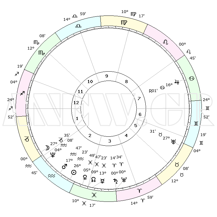 | | ΘΕΣΕΙΣ ΠΛΑΝΗΤΩΝ ΑΣΤΡΟΛΟΓΙΚΟΥ ΧΑΡΤΗ ΤΗΣ ΣΤΙΓΜΗΣ ΑΥΤΗΣ | | | | Πλανήτης | Ζώδιο | Μοίρες | Δεκαήμ. | Σε οίκο | Απόκλιση | | Ακμές των οίκων | | Ηλιος | Υδροχόος | 26°19' | Τρίτο | 3 | 12 S 45 | | 1ος | 04°04' | Τοξότης | | Σελήνη | Αιγόκερως | 26°44' | Τρίτο | 2 | 24 S 17 | | 2ος | 05°48' | Αιγόκερως | | Ερμής | Ιχθείς | 13°17' | Δεύτερο | 3 | 06 S 32 | | 3ος | 12°11' | Υδροχόος | | Αφροδίτη | Ιχθείς | 05°44' | Πρώτο | 3 | 10 S 46 | | 4ος | 18°17' | Ιχθείς | | Αρης | Υδροχόος | 17°44' | Δεύτερο | 3 | 16 S 33 | | 5ος | 18°47' | Κριός | | Δίας | Καρκίνος | 16°02'R | Δεύτερο | 8 | 22 N 48 | | 6ος | 13°17' | Ταύρος | | Κρόνος | Κριός | 00°14' | Πρώτο | 4 | 01 S 53 | | 7ος | 04°04' | Δίδυμοι | | Ουρανός | Ταύρος | 27°31' | Τρίτο | 6 | 19 N 25 | | 8ος | 05°48' | Καρκίνος | | Ποσειδώνας | Κριός | 00°34' | Πρώτο | 4 | 00 S 59 | | 9ος | 12°11' | Λέων | | Πλούτωνας | Υδροχόος | 04°08' | Πρώτο | 2 | 22 S 57 | | 10ος | 18°17' | Παρθένος | | Β. Δεσμός | Ιχθείς | 09°47' | Πρώτο | 3 | 07 S 54 | | 11ος | 18°47' | Ζυγός | | Ωροσκόπος | Τοξότης | 04°04' | Πρώτο | | | 12ος | 13°17' | Σκορπιός | | Μεσουράνημα | Παρθένος | 18°17' | Δεύτερο | | | |