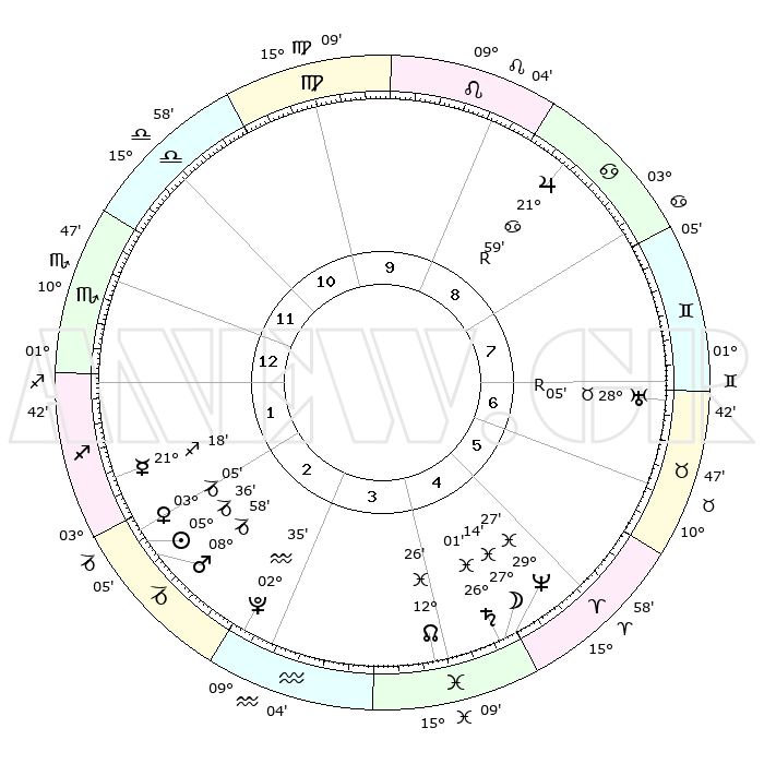 | | ΘΕΣΕΙΣ ΠΛΑΝΗΤΩΝ ΑΣΤΡΟΛΟΓΙΚΟΥ ΧΑΡΤΗ ΤΗΣ ΣΤΙΓΜΗΣ ΑΥΤΗΣ | | | | Πλανήτης | Ζώδιο | Μοίρες | Δεκαήμ. | Σε οίκο | Απόκλιση | | Ακμές των οίκων | | Ηλιος | Αιγόκερως | 05°32' | Πρώτο | 2 | 23 S 19 | | 1ος | 09°08' | Σκορπιός | | Σελήνη | Ιχθείς | 26°12' | Τρίτο | 5 | 00 S 18 | | 2ος | 08°08' | Τοξότης | | Ερμής | Τοξότης | 21°11' | Τρίτο | 2 | 23 S 08 | | 3ος | 10°56' | Αιγόκερως | | Αφροδίτη | Αιγόκερως | 02°60' | Πρώτο | 2 | 23 S 43 | | 4ος | 15°47' | Υδροχόος | | Αρης | Αιγόκερως | 08°55' | Πρώτο | 2 | 23 S 59 | | 5ος | 18°29' | Ιχθείς | | Δίας | Καρκίνος | 21°59'R | Τρίτο | 9 | 21 N 52 | | 6ος | 16°14' | Κριός | | Κρόνος | Ιχθείς | 26°01' | Τρίτο | 5 | 03 S 40 | | 7ος | 09°08' | Ταύρος | | Ουρανός | Ταύρος | 28°05'R | Τρίτο | 7 | 19 N 32 | | 8ος | 08°08' | Δίδυμοι | | Ποσειδώνας | Ιχθείς | 29°27' | Τρίτο | 5 | 01 S 27 | | 9ος | 10°56' | Καρκίνος | | Πλούτωνας | Υδροχόος | 02°35' | Πρώτο | 3 | 23 S 15 | | 10ος | 15°47' | Λέων | | Β. Δεσμός | Ιχθείς | 12°26' | Δεύτερο | 4 | 06 S 54 | | 11ος | 18°29' | Παρθένος | | Ωροσκόπος | Σκορπιός | 09°08' | Πρώτο | | | 12ος | 16°14' | Ζυγός | | Μεσουράνημα | Λέων | 15°47' | Δεύτερο | | | |