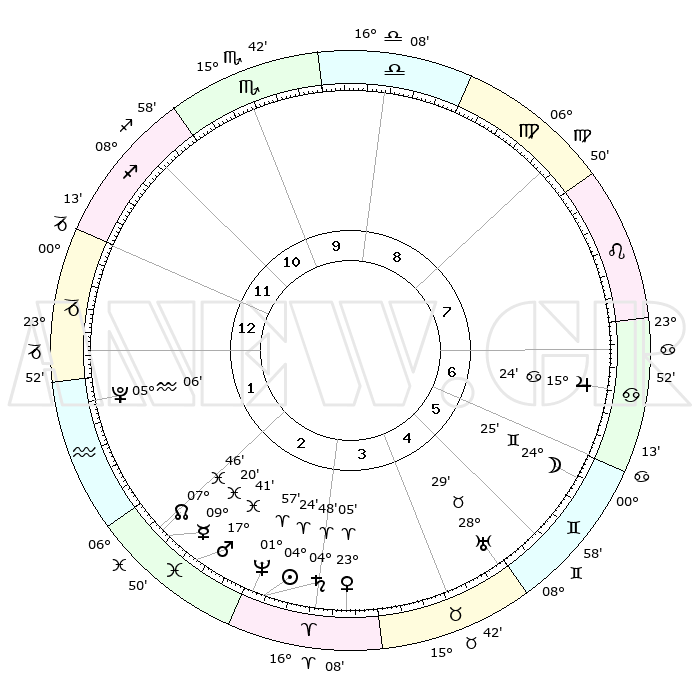 | | ΘΕΣΕΙΣ ΠΛΑΝΗΤΩΝ ΑΣΤΡΟΛΟΓΙΚΟΥ ΧΑΡΤΗ ΤΗΣ ΣΤΙΓΜΗΣ ΑΥΤΗΣ | | | | Πλανήτης | Ζώδιο | Μοίρες | Δεκαήμ. | Σε οίκο | Απόκλιση | | Ακμές των οίκων | | Ηλιος | Κριός | 04°20' | Πρώτο | 3 | 01 N 43 | | 1ος | 26°45' | Τοξότης | | Σελήνη | Δίδυμοι | 23°21' | Τρίτο | 6 | 28 N 19 | | 2ος | 03°05' | Υδροχόος | | Ερμής | Ιχθείς | 09°18' | Πρώτο | 2 | 08 S 04 | | 3ος | 12°49' | Ιχθείς | | Αφροδίτη | Κριός | 22°59' | Τρίτο | 4 | 08 N 16 | | 4ος | 17°15' | Κριός | | Αρης | Ιχθείς | 17°37' | Δεύτερο | 3 | 05 S 52 | | 5ος | 14°06' | Ταύρος | | Δίας | Καρκίνος | 15°24' | Δεύτερο | 7 | 22 N 54 | | 6ος | 06°07' | Δίδυμοι | | Κρόνος | Κριός | 04°47' | Πρώτο | 3 | 00 S 03 | | 7ος | 26°45' | Δίδυμοι | | Ουρανός | Ταύρος | 28°28' | Τρίτο | 5 | 19 N 39 | | 8ος | 03°05' | Λέων | | Ποσειδώνας | Κριός | 01°57' | Πρώτο | 3 | 00 S 26 | | 9ος | 12°49' | Παρθένος | | Πλούτωνας | Υδροχόος | 05°06' | Πρώτο | 2 | 22 S 48 | | 10ος | 17°15' | Ζυγός | | Β. Δεσμός | Ιχθείς | 07°47' | Πρώτο | 2 | 08 S 39 | | 11ος | 14°06' | Σκορπιός | | Ωροσκόπος | Τοξότης | 26°45' | Τρίτο | | | 12ος | 06°07' | Τοξότης | | Μεσουράνημα | Ζυγός | 17°15' | Δεύτερο | | | |