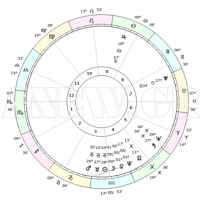 | | ΘΕΣΕΙΣ ΠΛΑΝΗΤΩΝ ΑΣΤΡΟΛΟΓΙΚΟΥ ΧΑΡΤΗ ΤΗΣ ΣΤΙΓΜΗΣ ΑΥΤΗΣ | | | | Πλανήτης | Ζώδιο | Μοίρες | Δεκαήμ. | Σε οίκο | Απόκλιση | | Ακμές των οίκων | | Ηλιος | Αιγόκερως | 28°50' | Τρίτο | 4 | 20 S 23 | | 1ος | 19°24' | Ζυγός | | Σελήνη | Αιγόκερως | 29°54' | Τρίτο | 4 | 23 S 23 | | 2ος | 17°12' | Σκορπιός | | Ερμής | Αιγόκερως | 27°04' | Τρίτο | 4 | 22 S 41 | | 3ος | 18°27' | Τοξότης | | Αφροδίτη | Υδροχόος | 01°46' | Πρώτο | 4 | 20 S 49 | | 4ος | 22°01' | Αιγόκερως | | Αρης | Αιγόκερως | 26°32' | Τρίτο | 4 | 21 S 49 | | 5ος | 24°58' | Υδροχόος | | Δίας | Καρκίνος | 18°57'R | Δεύτερο | 9 | 22 N 22 | | 6ος | 24°28' | Ιχθείς | | Κρόνος | Ιχθείς | 27°34' | Τρίτο | 6 | 03 S 00 | | 7ος | 19°24' | Κριός | | Ουρανός | Ταύρος | 27°34'R | Τρίτο | 8 | 19 N 26 | | 8ος | 17°12' | Ταύρος | | Ποσειδώνας | Ιχθείς | 29°49' | Τρίτο | 6 | 01 S 17 | | 9ος | 18°27' | Δίδυμοι | | Πλούτωνας | Υδροχόος | 03°17' | Πρώτο | 4 | 23 S 06 | | 10ος | 22°01' | Καρκίνος | | Β. Δεσμός | Ιχθείς | 11°13' | Δεύτερο | 5 | 07 S 21 | | 11ος | 24°58' | Λέων | | Ωροσκόπος | Ζυγός | 19°24' | Δεύτερο | | | 12ος | 24°28' | Παρθένος | | Μεσουράνημα | Καρκίνος | 22°01' | Τρίτο | | | |