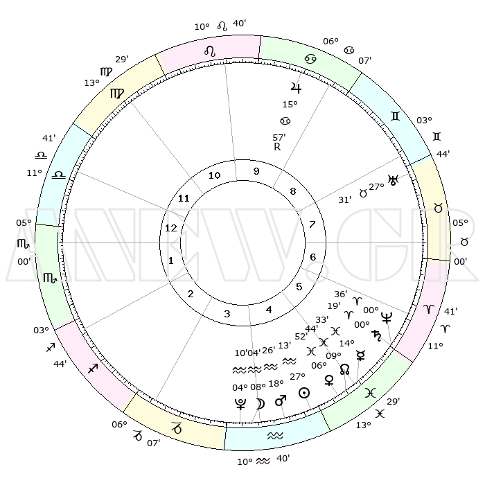 | | ΘΕΣΕΙΣ ΠΛΑΝΗΤΩΝ ΑΣΤΡΟΛΟΓΙΚΟΥ ΧΑΡΤΗ ΤΗΣ ΣΤΙΓΜΗΣ ΑΥΤΗΣ | | | | Πλανήτης | Ζώδιο | Μοίρες | Δεκαήμ. | Σε οίκο | Απόκλιση | | Ακμές των οίκων | | Ηλιος | Υδροχόος | 27°10' | Τρίτο | 5 | 12 S 27 | | 1ος | 19°00' | Ζυγός | | Σελήνη | Υδροχόος | 07°22' | Πρώτο | 4 | 21 S 06 | | 2ος | 16°47' | Σκορπιός | | Ερμής | Ιχθείς | 14°29' | Δεύτερο | 5 | 05 S 53 | | 3ος | 18°02' | Τοξότης | | Αφροδίτη | Ιχθείς | 06°47' | Πρώτο | 5 | 10 S 23 | | 4ος | 21°34' | Αιγόκερως | | Αρης | Υδροχόος | 18°23' | Δεύτερο | 4 | 16 S 20 | | 5ος | 24°31' | Υδροχόος | | Δίας | Καρκίνος | 15°58'R | Δεύτερο | 9 | 22 N 48 | | 6ος | 24°02' | Ιχθείς | | Κρόνος | Κριός | 00°19' | Πρώτο | 6 | 01 S 51 | | 7ος | 19°00' | Κριός | | Ουρανός | Ταύρος | 27°31' | Τρίτο | 8 | 19 N 25 | | 8ος | 16°47' | Ταύρος | | Ποσειδώνας | Κριός | 00°36' | Πρώτο | 6 | 00 S 58 | | 9ος | 18°02' | Δίδυμοι | | Πλούτωνας | Υδροχόος | 04°10' | Πρώτο | 4 | 22 S 56 | | 10ος | 21°34' | Καρκίνος | | Β. Δεσμός | Ιχθείς | 09°45' | Πρώτο | 5 | 07 S 55 | | 11ος | 24°31' | Λέων | | Ωροσκόπος | Ζυγός | 19°00' | Δεύτερο | | | 12ος | 24°02' | Παρθένος | | Μεσουράνημα | Καρκίνος | 21°34' | Τρίτο | | | |