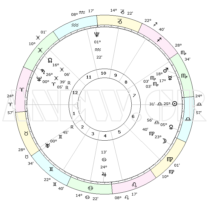 | ΘΕΣΕΙΣ ΠΛΑΝΗΤΩΝ ΑΣΤΡΟΛΟΓΙΚΟΥ ΧΑΡΤΗ ΤΗΣ ΣΤΙΓΜΗΣ ΑΥΤΗΣ | | Πλανήτης | Ζώδιο | Μοίρες | Δεκαήμ. | Σε οίκο | Απόκλιση | | Ακμές των οίκων | Ηλιος | Ζυγός | 25°12' | Τρίτο | 11 | 09 S 45 | | 1ος | 03°30' | Τοξότης | Σελήνη | Παρθένος | 19°41' | Δεύτερο | 10 | 03 N 57 | | 2ος | 05°08' | Αιγόκερως | Ερμής | Σκορπιός | 16°37' | Δεύτερο | 12 | 18 S 47 | | 3ος | 11°26' | Υδροχόος | Αφροδίτη | Ζυγός | 05°32' | Πρώτο | 10 | 00 S 47 | | 4ος | 17°31' | Ιχθείς | Αρης | Σκορπιός | 17°49' | Δεύτερο | 12 | 17 S 23 | | 5ος | 18°06' | Κριός | Δίας | Καρκίνος | 24°12' | Τρίτο | 8 | 21 N 19 | | 6ος | 12°40' | Ταύρος | Κρόνος | Ιχθείς | 26°40'R | Τρίτο | 4 | 03 S 37 | | 7ος | 03°30' | Δίδυμοι | Ουρανός | Δίδυμοι | 00°45'R | Πρώτο | 6 | 20 N 06 | | 8ος | 05°08' | Καρκίνος | Ποσειδώνας | Κριός | 00°06'R | Πρώτο | 4 | 01 S 13 | | 9ος | 11°26' | Λέων | Πλούτωνας | Υδροχόος | 01°22' | Πρώτο | 2 | 23 S 32 | | 10ος | 17°31' | Παρθένος | Β. Δεσμός | Ιχθείς | 16°07' | Δεύτερο | 3 | 05 S 28 | | 11ος | 18°06' | Ζυγός | Ωροσκόπος | Τοξότης | 03°30' | Πρώτο | | | 12ος | 12°40' | Σκορπιός | Μεσουράνημα | Παρθένος | 17°31' | Δεύτερο | | | |