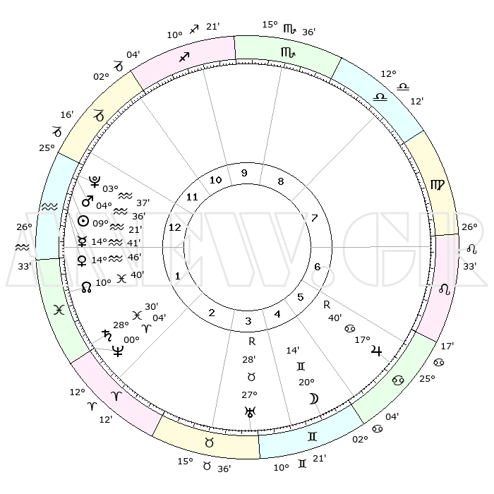 | | ΘΕΣΕΙΣ ΠΛΑΝΗΤΩΝ ΑΣΤΡΟΛΟΓΙΚΟΥ ΧΑΡΤΗ ΤΗΣ ΣΤΙΓΜΗΣ ΑΥΤΗΣ | | | | Πλανήτης | Ζώδιο | Μοίρες | Δεκαήμ. | Σε οίκο | Απόκλιση | | Ακμές των οίκων | | Ηλιος | Υδροχόος | 09°17' | Πρώτο | 1 | 17 S 56 | | 1ος | 25°29' | Αιγόκερως | | Σελήνη | Δίδυμοι | 19°16' | Δεύτερο | 5 | 28 N 06 | | 2ος | 08°46' | Ιχθείς | | Ερμής | Υδροχόος | 14°34' | Δεύτερο | 1 | 18 S 23 | | 3ος | 17°52' | Κριός | | Αφροδίτη | Υδροχόος | 14°41' | Δεύτερο | 1 | 17 S 41 | | 4ος | 17°08' | Ταύρος | | Αρης | Υδροχόος | 04°33' | Πρώτο | 1 | 20 S 07 | | 5ος | 10°15' | Δίδυμοι | | Δίας | Καρκίνος | 17°40'R | Δεύτερο | 6 | 22 N 34 | | 6ος | 01°33' | Καρκίνος | | Κρόνος | Ιχθείς | 28°29' | Τρίτο | 2 | 02 S 36 | | 7ος | 25°29' | Καρκίνος | | Ουρανός | Ταύρος | 27°28'R | Τρίτο | 4 | 19 N 24 | | 8ος | 08°46' | Παρθένος | | Ποσειδώνας | Κριός | 00°04' | Πρώτο | 2 | 01 S 11 | | 9ος | 17°52' | Ζυγός | | Πλούτωνας | Υδροχόος | 03°37' | Πρώτο | 1 | 23 S 02 | | 10ος | 17°08' | Σκορπιός | | Β. Δεσμός | Ιχθείς | 10°41' | Δεύτερο | 2 | 07 S 34 | | 11ος | 10°15' | Τοξότης | | Ωροσκόπος | Αιγόκερως | 25°29' | Τρίτο | | | 12ος | 01°33' | Αιγόκερως | | Μεσουράνημα | Σκορπιός | 17°08' | Δεύτερο | | | |