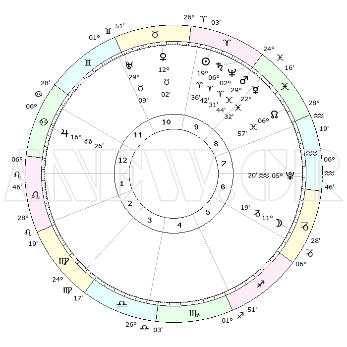 | | ΘΕΣΕΙΣ ΠΛΑΝΗΤΩΝ ΑΣΤΡΟΛΟΓΙΚΟΥ ΧΑΡΤΗ ΤΗΣ ΣΤΙΓΜΗΣ ΑΥΤΗΣ | | | | Πλανήτης | Ζώδιο | Μοίρες | Δεκαήμ. | Σε οίκο | Απόκλιση | | Ακμές των οίκων | | Ηλιος | Κριός | 19°33' | Δεύτερο | 10 | 07 N 39 | | 1ος | 17°06' | Καρκίνος | | Σελήνη | Αιγόκερως | 10°31' | Δεύτερο | 6 | 27 S 22 | | 2ος | 07°34' | Λέων | | Ερμής | Ιχθείς | 22°27' | Τρίτο | 9 | 05 S 06 | | 3ος | 00°57' | Παρθένος | | Αφροδίτη | Ταύρος | 11°57' | Δεύτερο | 11 | 15 N 20 | | 4ος | 00°06' | Ζυγός | | Αρης | Ιχθείς | 29°40' | Τρίτο | 9 | 01 S 03 | | 5ος | 05°57' | Σκορπιός | | Δίας | Καρκίνος | 16°26' | Δεύτερο | 12 | 22 N 48 | | 6ος | 13°50' | Τοξότης | | Κρόνος | Κριός | 06°42' | Πρώτο | 10 | 00 N 42 | | 7ος | 17°06' | Αιγόκερως | | Ουρανός | Ταύρος | 29°09' | Τρίτο | 11 | 19 N 48 | | 8ος | 07°34' | Υδροχόος | | Ποσειδώνας | Κριός | 02°31' | Πρώτο | 10 | 00 S 12 | | 9ος | 00°57' | Ιχθείς | | Πλούτωνας | Υδροχόος | 05°20' | Πρώτο | 7 | 22 S 47 | | 10ος | 00°06' | Κριός | | Β. Δεσμός | Ιχθείς | 06°58' | Πρώτο | 9 | 08 S 57 | | 11ος | 05°57' | Ταύρος | | Ωροσκόπος | Καρκίνος | 17°06' | Δεύτερο | | | 12ος | 13°50' | Δίδυμοι | | Μεσουράνημα | Κριός | 00°06' | Πρώτο | | | |