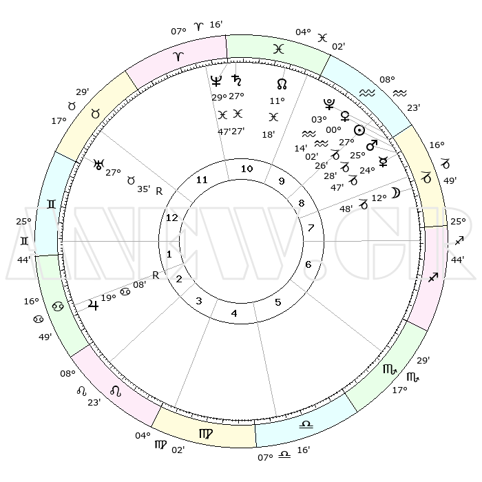 | | ΘΕΣΕΙΣ ΠΛΑΝΗΤΩΝ ΑΣΤΡΟΛΟΓΙΚΟΥ ΧΑΡΤΗ ΤΗΣ ΣΤΙΓΜΗΣ ΑΥΤΗΣ | | | | Πλανήτης | Ζώδιο | Μοίρες | Δεκαήμ. | Σε οίκο | Απόκλιση | | Ακμές των οίκων | | Ηλιος | Αιγόκερως | 27°21' | Τρίτο | 9 | 20 S 41 | | 1ος | 24°47' | Ταύρος | | Σελήνη | Αιγόκερως | 11°50' | Δεύτερο | 8 | 27 S 14 | | 2ος | 20°42' | Δίδυμοι | | Ερμής | Αιγόκερως | 24°40' | Τρίτο | 9 | 23 S 04 | | 3ος | 12°20' | Καρκίνος | | Αφροδίτη | Αιγόκερως | 29°56' | Τρίτο | 9 | 21 S 11 | | 4ος | 04°45' | Λέων | | Αρης | Αιγόκερως | 25°24' | Τρίτο | 9 | 22 S 01 | | 5ος | 02°21' | Παρθένος | | Δίας | Καρκίνος | 19°09'R | Δεύτερο | 3 | 22 N 20 | | 6ος | 09°55' | Ζυγός | | Κρόνος | Ιχθείς | 27°27' | Τρίτο | 11 | 03 S 03 | | 7ος | 24°47' | Σκορπιός | | Ουρανός | Ταύρος | 27°35'R | Τρίτο | 1 | 19 N 26 | | 8ος | 20°42' | Τοξότης | | Ποσειδώνας | Ιχθείς | 29°47' | Τρίτο | 11 | 01 S 18 | | 9ος | 12°20' | Αιγόκερως | | Πλούτωνας | Υδροχόος | 03°14' | Πρώτο | 9 | 23 S 07 | | 10ος | 04°45' | Υδροχόος | | Β. Δεσμός | Ιχθείς | 11°18' | Δεύτερο | 11 | 07 S 20 | | 11ος | 02°21' | Ιχθείς | | Ωροσκόπος | Ταύρος | 24°47' | Τρίτο | | | 12ος | 09°55' | Κριός | | Μεσουράνημα | Υδροχόος | 04°45' | Πρώτο | | | |