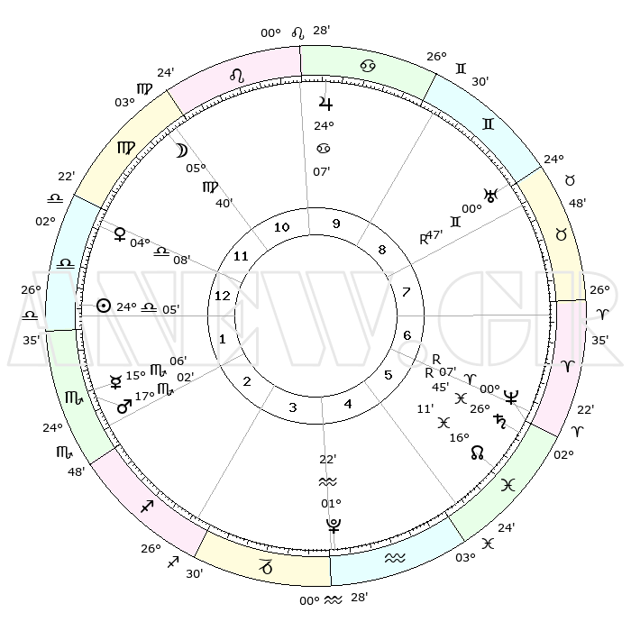 | ΘΕΣΕΙΣ ΠΛΑΝΗΤΩΝ ΑΣΤΡΟΛΟΓΙΚΟΥ ΧΑΡΤΗ ΤΗΣ ΣΤΙΓΜΗΣ ΑΥΤΗΣ | | Πλανήτης | Ζώδιο | Μοίρες | Δεκαήμ. | Σε οίκο | Απόκλιση | | Ακμές των οίκων | Ηλιος | Ζυγός | 23°38' | Τρίτο | 5 | 09 S 10 | | 1ος | 08°50' | Δίδυμοι | Σελήνη | Λέων | 29°57' | Τρίτο | 4 | 13 N 00 | | 2ος | 02°01' | Καρκίνος | Ερμής | Σκορπιός | 14°29' | Δεύτερο | 6 | 18 S 00 | | 3ος | 23°14' | Καρκίνος | Αφροδίτη | Ζυγός | 03°34' | Πρώτο | 5 | 00 S 01 | | 4ος | 16°46' | Λέων | Αρης | Σκορπιός | 16°43' | Δεύτερο | 6 | 17 S 04 | | 5ος | 16°49' | Παρθένος | Δίας | Καρκίνος | 24°05' | Τρίτο | 3 | 21 N 20 | | 6ος | 26°26' | Ζυγός | Κρόνος | Ιχθείς | 26°46'R | Τρίτο | 11 | 03 S 35 | | 7ος | 08°50' | Τοξότης | Ουρανός | Δίδυμοι | 00°48'R | Πρώτο | 12 | 20 N 06 | | 8ος | 02°01' | Αιγόκερως | Ποσειδώνας | Κριός | 00°08'R | Πρώτο | 11 | 01 S 12 | | 9ος | 23°14' | Αιγόκερως | Πλούτωνας | Υδροχόος | 01°22' | Πρώτο | 9 | 23 S 32 | | 10ος | 16°46' | Υδροχόος | Β. Δεσμός | Ιχθείς | 16°12' | Δεύτερο | 10 | 05 S 26 | | 11ος | 16°49' | Ιχθείς | Ωροσκόπος | Δίδυμοι | 08°50' | Πρώτο | | | 12ος | 26°26' | Κριός | Μεσουράνημα | Υδροχόος | 16°46' | Δεύτερο | | | |