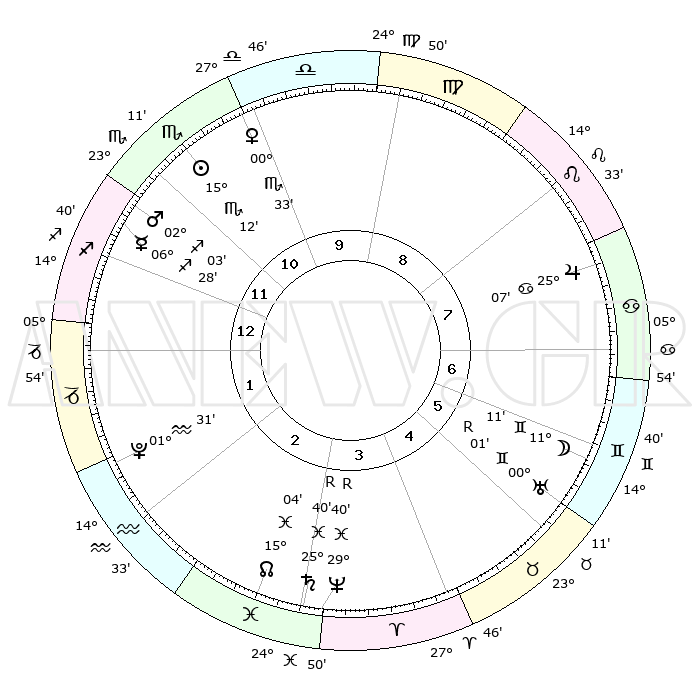 | | ΘΕΣΕΙΣ ΠΛΑΝΗΤΩΝ ΑΣΤΡΟΛΟΓΙΚΟΥ ΧΑΡΤΗ ΤΗΣ ΣΤΙΓΜΗΣ ΑΥΤΗΣ | | | | Πλανήτης | Ζώδιο | Μοίρες | Δεκαήμ. | Σε οίκο | Απόκλιση | | Ακμές των οίκων | | Ηλιος | Σκορπιός | 15°06' | Δεύτερο | 12 | 16 S 22 | | 1ος | 04°27' | Τοξότης | | Σελήνη | Δίδυμοι | 09°40' | Πρώτο | 7 | 26 N 52 | | 2ος | 06°14' | Αιγόκερως | | Ερμής | Τοξότης | 06°26' | Πρώτο | 1 | 24 S 00 | | 3ος | 12°41' | Υδροχόος | | Αφροδίτη | Σκορπιός | 00°26' | Πρώτο | 11 | 10 S 20 | | 4ος | 18°47' | Ιχθείς | | Αρης | Τοξότης | 01°58' | Πρώτο | 12 | 21 S 00 | | 5ος | 19°13' | Κριός | | Δίας | Καρκίνος | 25°07' | Τρίτο | 8 | 21 N 12 | | 6ος | 13°40' | Ταύρος | | Κρόνος | Ιχθείς | 25°40'R | Τρίτο | 4 | 03 S 58 | | 7ος | 04°27' | Δίδυμοι | | Ουρανός | Δίδυμοι | 00°02'R | Πρώτο | 6 | 19 N 57 | | 8ος | 06°14' | Καρκίνος | | Ποσειδώνας | Ιχθείς | 29°40'R | Τρίτο | 4 | 01 S 23 | | 9ος | 12°41' | Λέων | | Πλούτωνας | Υδροχόος | 01°30' | Πρώτο | 2 | 23 S 30 | | 10ος | 18°47' | Παρθένος | | Β. Δεσμός | Ιχθείς | 15°04' | Δεύτερο | 3 | 05 S 53 | | 11ος | 19°13' | Ζυγός | | Ωροσκόπος | Τοξότης | 04°27' | Πρώτο | | | 12ος | 13°40' | Σκορπιός | | Μεσουράνημα | Παρθένος | 18°47' | Δεύτερο | | | |