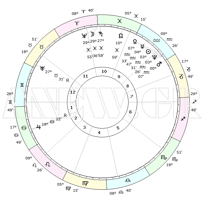 | | ΘΕΣΕΙΣ ΠΛΑΝΗΤΩΝ ΑΣΤΡΟΛΟΓΙΚΟΥ ΧΑΡΤΗ ΤΗΣ ΣΤΙΓΜΗΣ ΑΥΤΗΣ | | | | Πλανήτης | Ζώδιο | Μοίρες | Δεκαήμ. | Σε οίκο | Απόκλιση | | Ακμές των οίκων | | Ηλιος | Υδροχόος | 03°26' | Πρώτο | 10 | 19 S 23 | | 1ος | 21°50' | Ταύρος | | Σελήνη | Ιχθείς | 28°24' | Τρίτο | 11 | 00 N 55 | | 2ος | 18°25' | Δίδυμοι | | Ερμής | Υδροχόος | 04°38' | Πρώτο | 10 | 21 S 07 | | 3ος | 10°13' | Καρκίνος | | Αφροδίτη | Υδροχόος | 07°26' | Πρώτο | 10 | 19 S 34 | | 4ος | 02°28' | Λέων | | Αρης | Υδροχόος | 00°03' | Πρώτο | 9 | 21 S 07 | | 5ος | 29°36' | Λέων | | Δίας | Καρκίνος | 18°23'R | Δεύτερο | 3 | 22 N 28 | | 6ος | 06°38' | Ζυγός | | Κρόνος | Ιχθείς | 27°57' | Τρίτο | 11 | 02 S 50 | | 7ος | 21°50' | Σκορπιός | | Ουρανός | Ταύρος | 27°31'R | Τρίτο | 1 | 19 N 25 | | 8ος | 18°25' | Τοξότης | | Ποσειδώνας | Ιχθείς | 29°55' | Τρίτο | 11 | 01 S 15 | | 9ος | 10°13' | Αιγόκερως | | Πλούτωνας | Υδροχόος | 03°26' | Πρώτο | 10 | 23 S 04 | | 10ος | 02°28' | Υδροχόος | | Β. Δεσμός | Ιχθείς | 10°59' | Δεύτερο | 11 | 07 S 27 | | 11ος | 29°36' | Υδροχόος | | Ωροσκόπος | Ταύρος | 21°50' | Τρίτο | | | 12ος | 06°38' | Κριός | | Μεσουράνημα | Υδροχόος | 02°28' | Πρώτο | | | |
