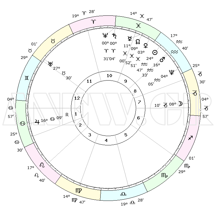 | | ΘΕΣΕΙΣ ΠΛΑΝΗΤΩΝ ΑΣΤΡΟΛΟΓΙΚΟΥ ΧΑΡΤΗ ΤΗΣ ΣΤΙΓΜΗΣ ΑΥΤΗΣ | | | | Πλανήτης | Ζώδιο | Μοίρες | Δεκαήμ. | Σε οίκο | Απόκλιση | | Ακμές των οίκων | | Ηλιος | Υδροχόος | 24°43' | Τρίτο | 10 | 13 S 17 | | 1ος | 08°47' | Δίδυμοι | | Σελήνη | Αιγόκερως | 07°15' | Πρώτο | 8 | 27 S 52 | | 2ος | 01°58' | Καρκίνος | | Ερμής | Ιχθείς | 10°54' | Δεύτερο | 10 | 07 S 45 | | 3ος | 23°12' | Καρκίνος | | Αφροδίτη | Ιχθείς | 03°46' | Πρώτο | 10 | 11 S 30 | | 4ος | 16°43' | Λέων | | Αρης | Υδροχόος | 16°29' | Δεύτερο | 9 | 16 S 55 | | 5ος | 16°46' | Παρθένος | | Δίας | Καρκίνος | 16°09'R | Δεύτερο | 2 | 22 N 47 | | 6ος | 26°23' | Ζυγός | | Κρόνος | Κριός | 00°03' | Πρώτο | 11 | 01 S 57 | | 7ος | 08°47' | Τοξότης | | Ουρανός | Ταύρος | 27°30' | Τρίτο | 12 | 19 N 25 | | 8ος | 01°59' | Αιγόκερως | | Ποσειδώνας | Κριός | 00°31' | Πρώτο | 11 | 01 S 00 | | 9ος | 23°12' | Αιγόκερως | | Πλούτωνας | Υδροχόος | 04°05' | Πρώτο | 9 | 22 S 57 | | 10ος | 16°43' | Υδροχόος | | Β. Δεσμός | Ιχθείς | 09°52' | Πρώτο | 10 | 07 S 52 | | 11ος | 16°46' | Ιχθείς | | Ωροσκόπος | Δίδυμοι | 08°47' | Πρώτο | | | 12ος | 26°23' | Κριός | | Μεσουράνημα | Υδροχόος | 16°43' | Δεύτερο | | | |