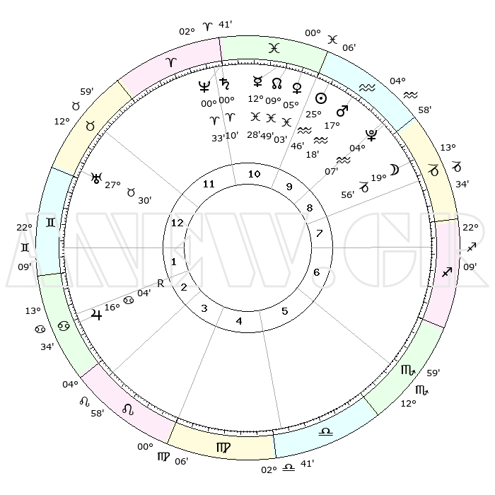 | | ΘΕΣΕΙΣ ΠΛΑΝΗΤΩΝ ΑΣΤΡΟΛΟΓΙΚΟΥ ΧΑΡΤΗ ΤΗΣ ΣΤΙΓΜΗΣ ΑΥΤΗΣ | | | | Πλανήτης | Ζώδιο | Μοίρες | Δεκαήμ. | Σε οίκο | Απόκλιση | | Ακμές των οίκων | | Ηλιος | Υδροχόος | 25°41' | Τρίτο | 10 | 12 S 57 | | 1ος | 23°15' | Ταύρος | | Σελήνη | Αιγόκερως | 19°02' | Δεύτερο | 9 | 26 S 04 | | 2ος | 19°31' | Δίδυμοι | | Ερμής | Ιχθείς | 12°22' | Δεύτερο | 11 | 07 S 00 | | 3ος | 11°14' | Καρκίνος | | Αφροδίτη | Ιχθείς | 04°58' | Πρώτο | 11 | 11 S 03 | | 4ος | 03°34' | Λέων | | Αρης | Υδροχόος | 17°15' | Δεύτερο | 10 | 16 S 41 | | 5ος | 00°55' | Παρθένος | | Δίας | Καρκίνος | 16°04'R | Δεύτερο | 3 | 22 N 47 | | 6ος | 08°13' | Ζυγός | | Κρόνος | Κριός | 00°09' | Πρώτο | 11 | 01 S 55 | | 7ος | 23°15' | Σκορπιός | | Ουρανός | Ταύρος | 27°30' | Τρίτο | 1 | 19 N 25 | | 8ος | 19°31' | Τοξότης | | Ποσειδώνας | Κριός | 00°33' | Πρώτο | 11 | 00 S 59 | | 9ος | 11°14' | Αιγόκερως | | Πλούτωνας | Υδροχόος | 04°07' | Πρώτο | 10 | 22 S 57 | | 10ος | 03°34' | Υδροχόος | | Β. Δεσμός | Ιχθείς | 09°49' | Πρώτο | 11 | 07 S 53 | | 11ος | 00°55' | Ιχθείς | | Ωροσκόπος | Ταύρος | 23°15' | Τρίτο | | | 12ος | 08°13' | Κριός | | Μεσουράνημα | Υδροχόος | 03°34' | Πρώτο | | | |