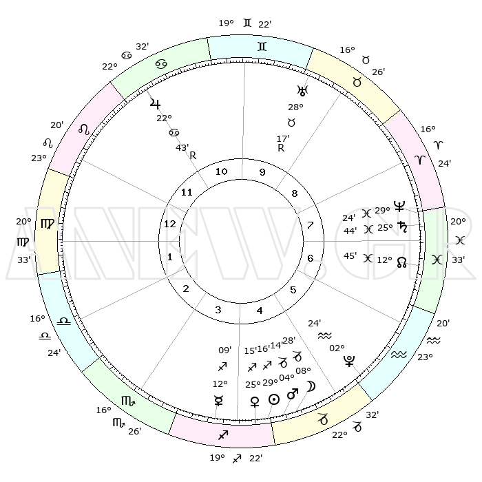 | | ΘΕΣΕΙΣ ΠΛΑΝΗΤΩΝ ΑΣΤΡΟΛΟΓΙΚΟΥ ΧΑΡΤΗ ΤΗΣ ΣΤΙΓΜΗΣ ΑΥΤΗΣ | | | | Πλανήτης | Ζώδιο | Μοίρες | Δεκαήμ. | Σε οίκο | Απόκλιση | | Ακμές των οίκων | | Ηλιος | Τοξότης | 29°11' | Τρίτο | 5 | 23 S 26 | | 1ος | 25°58' | Λέων | | Σελήνη | Αιγόκερως | 07°26' | Πρώτο | 5 | 27 S 44 | | 2ος | 19°24' | Παρθένος | | Ερμής | Τοξότης | 12°02' | Δεύτερο | 4 | 21 S 27 | | 3ος | 17°41' | Ζυγός | | Αφροδίτη | Τοξότης | 25°09' | Τρίτο | 5 | 23 S 25 | | 4ος | 20°32' | Σκορπιός | | Αρης | Αιγόκερως | 04°10' | Πρώτο | 5 | 24 S 11 | | 5ος | 25°01' | Τοξότης | | Δίας | Καρκίνος | 22°44'R | Τρίτο | 11 | 21 N 44 | | 6ος | 27°18' | Αιγόκερως | | Κρόνος | Ιχθείς | 25°44' | Τρίτο | 8 | 03 S 48 | | 7ος | 25°58' | Υδροχόος | | Ουρανός | Ταύρος | 28°17'R | Τρίτο | 10 | 19 N 35 | | 8ος | 19°24' | Ιχθείς | | Ποσειδώνας | Ιχθείς | 29°24' | Τρίτο | 8 | 01 S 28 | | 9ος | 17°41' | Κριός | | Πλούτωνας | Υδροχόος | 02°24' | Πρώτο | 6 | 23 S 17 | | 10ος | 20°32' | Ταύρος | | Β. Δεσμός | Ιχθείς | 12°46' | Δεύτερο | 7 | 06 S 46 | | 11ος | 25°01' | Δίδυμοι | | Ωροσκόπος | Λέων | 25°58' | Τρίτο | | | 12ος | 27°18' | Καρκίνος | | Μεσουράνημα | Ταύρος | 20°32' | Τρίτο | | | |
