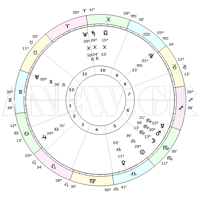 | ΘΕΣΕΙΣ ΠΛΑΝΗΤΩΝ ΑΣΤΡΟΛΟΓΙΚΟΥ ΧΑΡΤΗ ΤΗΣ ΣΤΙΓΜΗΣ ΑΥΤΗΣ | | Πλανήτης | Ζώδιο | Μοίρες | Δεκαήμ. | Σε οίκο | Απόκλιση | | Ακμές των οίκων | Ηλιος | Ζυγός | 29°30' | Τρίτο | 6 | 11 S 18 | | 1ος | 09°14' | Ταύρος | Σελήνη | Σκορπιός | 12°04' | Δεύτερο | 7 | 19 S 26 | | 2ος | 08°57' | Δίδυμοι | Ερμής | Σκορπιός | 22°14' | Τρίτο | 7 | 20 S 42 | | 3ος | 01°39' | Καρκίνος | Αφροδίτη | Ζυγός | 10°56' | Δεύτερο | 6 | 02 S 55 | | 4ος | 23°27' | Καρκίνος | Αρης | Σκορπιός | 20°52' | Τρίτο | 7 | 18 S 15 | | 5ος | 18°51' | Λέων | Δίας | Καρκίνος | 24°30' | Τρίτο | 4 | 21 N 17 | | 6ος | 23°25' | Παρθένος | Κρόνος | Ιχθείς | 26°25'R | Τρίτο | 12 | 03 S 43 | | 7ος | 09°14' | Σκορπιός | Ουρανός | Δίδυμοι | 00°37'R | Πρώτο | 1 | 20 N 04 | | 8ος | 08°57' | Τοξότης | Ποσειδώνας | Ιχθείς | 29°59'R | Τρίτο | 12 | 01 S 16 | | 9ος | 01°39' | Αιγόκερως | Πλούτωνας | Υδροχόος | 01°23' | Πρώτο | 10 | 23 S 32 | | 10ος | 23°27' | Αιγόκερως | Β. Δεσμός | Ιχθείς | 15°54' | Δεύτερο | 11 | 05 S 34 | | 11ος | 18°51' | Υδροχόος | Ωροσκόπος | Ταύρος | 09°14' | Πρώτο | | | 12ος | 23°25' | Ιχθείς | Μεσουράνημα | Αιγόκερως | 23°27' | Τρίτο | | | |