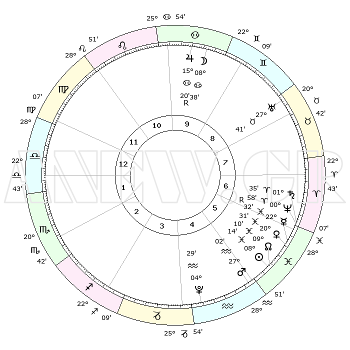 | | ΘΕΣΕΙΣ ΠΛΑΝΗΤΩΝ ΑΣΤΡΟΛΟΓΙΚΟΥ ΧΑΡΤΗ ΤΗΣ ΣΤΙΓΜΗΣ ΑΥΤΗΣ | | | | Πλανήτης | Ζώδιο | Μοίρες | Δεκαήμ. | Σε οίκο | Απόκλιση | | Ακμές των οίκων | | Ηλιος | Ιχθείς | 08°10' | Πρώτο | 5 | 08 S 30 | | 1ος | 04°58' | Ζυγός | | Σελήνη | Καρκίνος | 07°47' | Πρώτο | 10 | 27 N 50 | | 2ος | 01°54' | Σκορπιός | | Ερμής | Ιχθείς | 22°33'R | Τρίτο | 6 | 00 S 18 | | 3ος | 02°31' | Τοξότης | | Αφροδίτη | Ιχθείς | 20°26' | Τρίτο | 6 | 05 S 04 | | 4ος | 05°34' | Αιγόκερως | | Αρης | Υδροχόος | 26°60' | Τρίτο | 5 | 13 S 32 | | 5ος | 08°31' | Υδροχόος | | Δίας | Καρκίνος | 15°20'R | Δεύτερο | 10 | 22 N 53 | | 6ος | 08°45' | Ιχθείς | | Κρόνος | Κριός | 01°34' | Πρώτο | 6 | 01 S 20 | | 7ος | 04°58' | Κριός | | Ουρανός | Ταύρος | 27°41' | Τρίτο | 8 | 19 N 28 | | 8ος | 01°54' | Ταύρος | | Ποσειδώνας | Κριός | 00°58' | Πρώτο | 6 | 00 S 49 | | 9ος | 02°31' | Δίδυμοι | | Πλούτωνας | Υδροχόος | 04°29' | Πρώτο | 4 | 22 S 53 | | 10ος | 05°35' | Καρκίνος | | Β. Δεσμός | Ιχθείς | 09°10' | Πρώτο | 6 | 08 S 08 | | 11ος | 08°31' | Λέων | | Ωροσκόπος | Ζυγός | 04°58' | Πρώτο | | | 12ος | 08°45' | Παρθένος | | Μεσουράνημα | Καρκίνος | 05°35' | Πρώτο | | | |