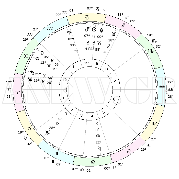 | | ΘΕΣΕΙΣ ΠΛΑΝΗΤΩΝ ΑΣΤΡΟΛΟΓΙΚΟΥ ΧΑΡΤΗ ΤΗΣ ΣΤΙΓΜΗΣ ΑΥΤΗΣ | | | | Πλανήτης | Ζώδιο | Μοίρες | Δεκαήμ. | Σε οίκο | Απόκλιση | | Ακμές των οίκων | | Ηλιος | Αιγόκερως | 03°49' | Πρώτο | 11 | 23 S 23 | | 1ος | 28°10' | Υδροχόος | | Σελήνη | Ιχθείς | 04°06' | Πρώτο | 1 | 10 S 36 | | 2ος | 13°43' | Κριός | | Ερμής | Τοξότης | 18°41' | Δεύτερο | 10 | 22 S 44 | | 3ος | 16°48' | Ταύρος | | Αφροδίτη | Αιγόκερως | 00°52' | Πρώτο | 10 | 23 S 41 | | 4ος | 11°23' | Δίδυμοι | | Αρης | Αιγόκερως | 07°38' | Πρώτο | 11 | 24 S 04 | | 5ος | 03°04' | Καρκίνος | | Δίας | Καρκίνος | 22°12'R | Τρίτο | 5 | 21 N 50 | | 6ος | 26°27' | Καρκίνος | | Κρόνος | Ιχθείς | 25°56' | Τρίτο | 1 | 03 S 43 | | 7ος | 28°10' | Λέων | | Ουρανός | Ταύρος | 28°08'R | Τρίτο | 3 | 19 N 33 | | 8ος | 13°43' | Ζυγός | | Ποσειδώνας | Ιχθείς | 29°26' | Τρίτο | 1 | 01 S 27 | | 9ος | 16°48' | Σκορπιός | | Πλούτωνας | Υδροχόος | 02°32' | Πρώτο | 12 | 23 S 16 | | 10ος | 11°23' | Τοξότης | | Β. Δεσμός | Ιχθείς | 12°31' | Δεύτερο | 1 | 06 S 52 | | 11ος | 03°04' | Αιγόκερως | | Ωροσκόπος | Υδροχόος | 28°10' | Τρίτο | | | 12ος | 26°27' | Αιγόκερως | | Μεσουράνημα | Τοξότης | 11°23' | Δεύτερο | | | |