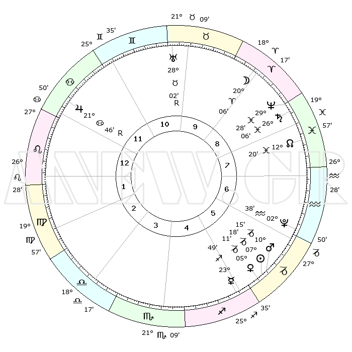 | | ΘΕΣΕΙΣ ΠΛΑΝΗΤΩΝ ΑΣΤΡΟΛΟΓΙΚΟΥ ΧΑΡΤΗ ΤΗΣ ΣΤΙΓΜΗΣ ΑΥΤΗΣ | | | | Πλανήτης | Ζώδιο | Μοίρες | Δεκαήμ. | Σε οίκο | Απόκλιση | | Ακμές των οίκων | | Ηλιος | Αιγόκερως | 07°15' | Πρώτο | 5 | 23 S 14 | | 1ος | 07°46' | Λέων | | Σελήνη | Κριός | 19°12' | Δεύτερο | 9 | 10 N 24 | | 2ος | 29°24' | Λέων | | Ερμής | Τοξότης | 23°43' | Τρίτο | 5 | 23 S 29 | | 3ος | 25°30' | Παρθένος | | Αφροδίτη | Αιγόκερως | 05°06' | Πρώτο | 5 | 23 S 43 | | 4ος | 27°22' | Ζυγός | | Αρης | Αιγόκερως | 10°12' | Δεύτερο | 6 | 23 S 55 | | 5ος | 03°06' | Τοξότης | | Δίας | Καρκίνος | 21°46'R | Τρίτο | 12 | 21 N 54 | | 6ος | 07°35' | Αιγόκερως | | Κρόνος | Ιχθείς | 26°06' | Τρίτο | 9 | 03 S 38 | | 7ος | 07°46' | Υδροχόος | | Ουρανός | Ταύρος | 28°02'R | Τρίτο | 10 | 19 N 31 | | 8ος | 29°24' | Υδροχόος | | Ποσειδώνας | Ιχθείς | 29°28' | Τρίτο | 9 | 01 S 26 | | 9ος | 25°30' | Ιχθείς | | Πλούτωνας | Υδροχόος | 02°38' | Πρώτο | 6 | 23 S 14 | | 10ος | 27°22' | Κριός | | Β. Δεσμός | Ιχθείς | 12°21' | Δεύτερο | 8 | 06 S 56 | | 11ος | 03°06' | Δίδυμοι | | Ωροσκόπος | Λέων | 07°46' | Πρώτο | | | 12ος | 07°35' | Καρκίνος | | Μεσουράνημα | Κριός | 27°22' | Τρίτο | | | |