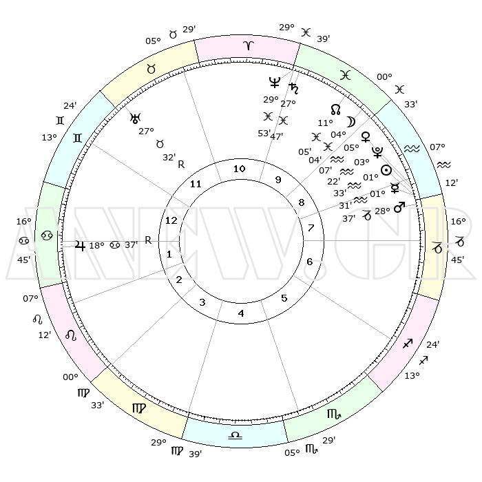| | ΘΕΣΕΙΣ ΠΛΑΝΗΤΩΝ ΑΣΤΡΟΛΟΓΙΚΟΥ ΧΑΡΤΗ ΤΗΣ ΣΤΙΓΜΗΣ ΑΥΤΗΣ | | | | Πλανήτης | Ζώδιο | Μοίρες | Δεκαήμ. | Σε οίκο | Απόκλιση | | Ακμές των οίκων | | Ηλιος | Υδροχόος | 01°29' | Πρώτο | 8 | 19 S 49 | | 1ος | 23°60' | Δίδυμοι | | Σελήνη | Ιχθείς | 03°09' | Πρώτο | 10 | 10 S 52 | | 2ος | 15°14' | Καρκίνος | | Ερμής | Υδροχόος | 01°24' | Πρώτο | 8 | 21 S 51 | | 3ος | 06°43' | Λέων | | Αφροδίτη | Υδροχόος | 05°02' | Πρώτο | 8 | 20 S 07 | | 4ος | 02°07' | Παρθένος | | Αρης | Αιγόκερως | 28°34' | Τρίτο | 8 | 21 S 25 | | 5ος | 05°02' | Ζυγός | | Δίας | Καρκίνος | 18°37'R | Δεύτερο | 2 | 22 N 25 | | 6ος | 15°19' | Σκορπιός | | Κρόνος | Ιχθείς | 27°47' | Τρίτο | 10 | 02 S 54 | | 7ος | 23°60' | Τοξότης | | Ουρανός | Ταύρος | 27°32'R | Τρίτο | 12 | 19 N 25 | | 8ος | 15°14' | Αιγόκερως | | Ποσειδώνας | Ιχθείς | 29°53' | Τρίτο | 10 | 01 S 16 | | 9ος | 06°43' | Υδροχόος | | Πλούτωνας | Υδροχόος | 03°22' | Πρώτο | 8 | 23 S 05 | | 10ος | 02°07' | Ιχθείς | | Β. Δεσμός | Ιχθείς | 11°05' | Δεύτερο | 10 | 07 S 24 | | 11ος | 05°02' | Κριός | | Ωροσκόπος | Δίδυμοι | 23°60' | Τρίτο | | | 12ος | 15°19' | Ταύρος | | Μεσουράνημα | Ιχθείς | 02°07' | Πρώτο | | | |