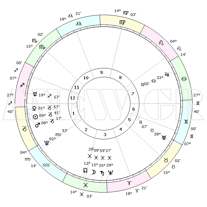 | | ΘΕΣΕΙΣ ΠΛΑΝΗΤΩΝ ΑΣΤΡΟΛΟΓΙΚΟΥ ΧΑΡΤΗ ΤΗΣ ΣΤΙΓΜΗΣ ΑΥΤΗΣ | | | | Πλανήτης | Ζώδιο | Μοίρες | Δεκαήμ. | Σε οίκο | Απόκλιση | | Ακμές των οίκων | | Ηλιος | Αιγόκερως | 04°36' | Πρώτο | 1 | 23 S 21 | | 1ος | 03°46' | Τοξότης | | Σελήνη | Ιχθείς | 14°08' | Δεύτερο | 3 | 06 S 00 | | 2ος | 05°26' | Αιγόκερως | | Ερμής | Τοξότης | 19°50' | Δεύτερο | 1 | 22 S 56 | | 3ος | 11°47' | Υδροχόος | | Αφροδίτη | Αιγόκερως | 01°51' | Πρώτο | 1 | 23 S 42 | | 4ος | 17°52' | Ιχθείς | | Αρης | Αιγόκερως | 08°13' | Πρώτο | 2 | 24 S 02 | | 5ος | 18°25' | Κριός | | Δίας | Καρκίνος | 22°06'R | Τρίτο | 8 | 21 N 51 | | 6ος | 12°57' | Ταύρος | | Κρόνος | Ιχθείς | 25°58' | Τρίτο | 4 | 03 S 42 | | 7ος | 03°46' | Δίδυμοι | | Ουρανός | Ταύρος | 28°07'R | Τρίτο | 6 | 19 N 32 | | 8ος | 05°26' | Καρκίνος | | Ποσειδώνας | Ιχθείς | 29°27' | Τρίτο | 4 | 01 S 27 | | 9ος | 11°47' | Λέων | | Πλούτωνας | Υδροχόος | 02°33' | Πρώτο | 2 | 23 S 15 | | 10ος | 17°52' | Παρθένος | | Β. Δεσμός | Ιχθείς | 12°29' | Δεύτερο | 3 | 06 S 53 | | 11ος | 18°25' | Ζυγός | | Ωροσκόπος | Τοξότης | 03°46' | Πρώτο | | | 12ος | 12°57' | Σκορπιός | | Μεσουράνημα | Παρθένος | 17°52' | Δεύτερο | | | |