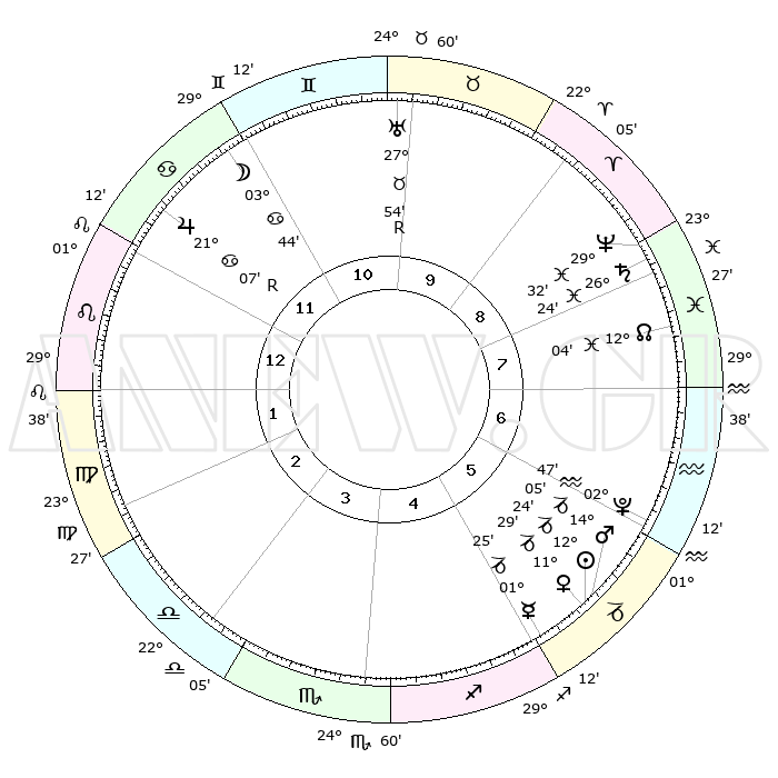 | | ΘΕΣΕΙΣ ΠΛΑΝΗΤΩΝ ΑΣΤΡΟΛΟΓΙΚΟΥ ΧΑΡΤΗ ΤΗΣ ΣΤΙΓΜΗΣ ΑΥΤΗΣ | | | | Πλανήτης | Ζώδιο | Μοίρες | Δεκαήμ. | Σε οίκο | Απόκλιση | | Ακμές των οίκων | | Ηλιος | Αιγόκερως | 12°19' | Δεύτερο | 6 | 22 S 52 | | 1ος | 07°54' | Λέων | | Σελήνη | Καρκίνος | 02°36' | Πρώτο | 11 | 28 N 07 | | 2ος | 29°32' | Λέων | | Ερμής | Αιγόκερως | 01°18' | Πρώτο | 5 | 24 S 11 | | 3ος | 25°39' | Παρθένος | | Αφροδίτη | Αιγόκερως | 11°23' | Δεύτερο | 6 | 23 S 31 | | 4ος | 27°32' | Ζυγός | | Αρης | Αιγόκερως | 14°01' | Δεύτερο | 6 | 23 S 36 | | 5ος | 03°16' | Τοξότης | | Δίας | Καρκίνος | 21°08'R | Τρίτο | 12 | 22 N 01 | | 6ος | 07°44' | Αιγόκερως | | Κρόνος | Ιχθείς | 26°23' | Τρίτο | 9 | 03 S 30 | | 7ος | 07°54' | Υδροχόος | | Ουρανός | Ταύρος | 27°54'R | Τρίτο | 10 | 19 N 30 | | 8ος | 29°32' | Υδροχόος | | Ποσειδώνας | Ιχθείς | 29°32' | Τρίτο | 9 | 01 S 24 | | 9ος | 25°39' | Ιχθείς | | Πλούτωνας | Υδροχόος | 02°46' | Πρώτο | 6 | 23 S 12 | | 10ος | 27°32' | Κριός | | Β. Δεσμός | Ιχθείς | 12°05' | Δεύτερο | 8 | 07 S 02 | | 11ος | 03°16' | Δίδυμοι | | Ωροσκόπος | Λέων | 07°54' | Πρώτο | | | 12ος | 07°44' | Καρκίνος | | Μεσουράνημα | Κριός | 27°32' | Τρίτο | | | |