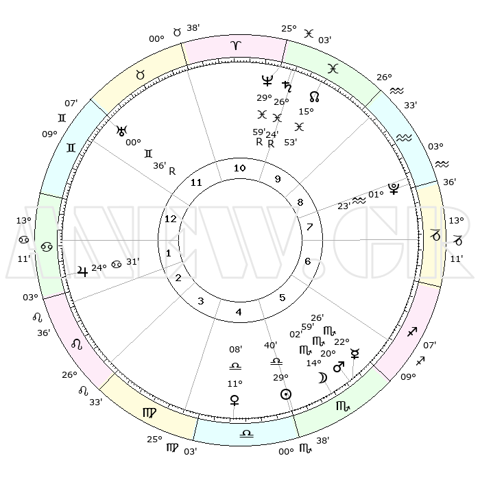 | ΘΕΣΕΙΣ ΠΛΑΝΗΤΩΝ ΑΣΤΡΟΛΟΓΙΚΟΥ ΧΑΡΤΗ ΤΗΣ ΣΤΙΓΜΗΣ ΑΥΤΗΣ | | Πλανήτης | Ζώδιο | Μοίρες | Δεκαήμ. | Σε οίκο | Απόκλιση | | Ακμές των οίκων | Ηλιος | Ζυγός | 29°34' | Τρίτο | 6 | 11 S 19 | | 1ος | 09°16' | Δίδυμοι | Σελήνη | Σκορπιός | 12°52' | Δεύτερο | 6 | 19 S 43 | | 2ος | 02°23' | Καρκίνος | Ερμής | Σκορπιός | 22°19' | Τρίτο | 6 | 20 S 43 | | 3ος | 23°36' | Καρκίνος | Αφροδίτη | Ζυγός | 11°01' | Δεύτερο | 5 | 02 S 57 | | 4ος | 17°10' | Λέων | Αρης | Σκορπιός | 20°55' | Τρίτο | 6 | 18 S 16 | | 5ος | 17°18' | Παρθένος | Δίας | Καρκίνος | 24°30' | Τρίτο | 3 | 21 N 17 | | 6ος | 26°58' | Ζυγός | Κρόνος | Ιχθείς | 26°24'R | Τρίτο | 11 | 03 S 43 | | 7ος | 09°16' | Τοξότης | Ουρανός | Δίδυμοι | 00°36'R | Πρώτο | 12 | 20 N 04 | | 8ος | 02°23' | Αιγόκερως | Ποσειδώνας | Ιχθείς | 29°59'R | Τρίτο | 11 | 01 S 16 | | 9ος | 23°36' | Αιγόκερως | Πλούτωνας | Υδροχόος | 01°23' | Πρώτο | 9 | 23 S 32 | | 10ος | 17°10' | Υδροχόος | Β. Δεσμός | Ιχθείς | 15°53' | Δεύτερο | 10 | 05 S 34 | | 11ος | 17°18' | Ιχθείς | Ωροσκόπος | Δίδυμοι | 09°16' | Πρώτο | | | 12ος | 26°58' | Κριός | Μεσουράνημα | Υδροχόος | 17°10' | Δεύτερο | | | |