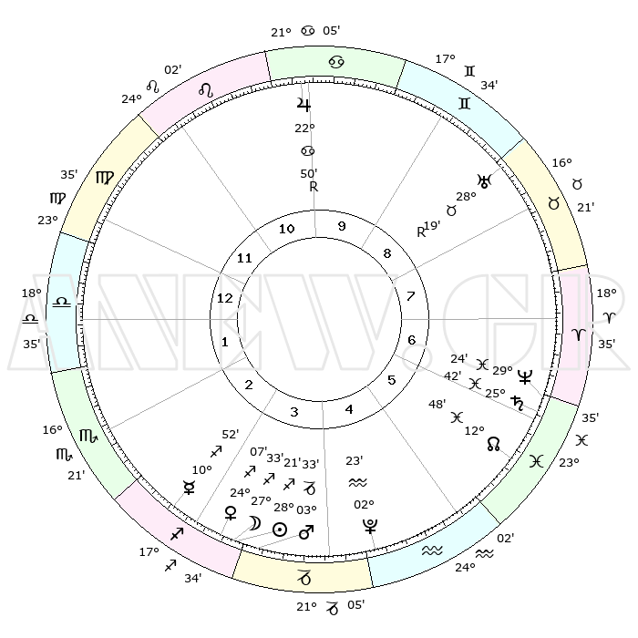 | | ΘΕΣΕΙΣ ΠΛΑΝΗΤΩΝ ΑΣΤΡΟΛΟΓΙΚΟΥ ΧΑΡΤΗ ΤΗΣ ΣΤΙΓΜΗΣ ΑΥΤΗΣ | | | | Πλανήτης | Ζώδιο | Μοίρες | Δεκαήμ. | Σε οίκο | Απόκλιση | | Ακμές των οίκων | | Ηλιος | Τοξότης | 28°16' | Τρίτο | 4 | 23 S 25 | | 1ος | 26°06' | Παρθένος | | Σελήνη | Τοξότης | 26°38' | Τρίτο | 4 | 28 S 14 | | 2ος | 22°23' | Ζυγός | | Ερμής | Τοξότης | 10°45' | Δεύτερο | 3 | 21 S 09 | | 3ος | 22°40' | Σκορπιός | | Αφροδίτη | Τοξότης | 24°01' | Τρίτο | 3 | 23 S 20 | | 4ος | 25°37' | Τοξότης | | Αρης | Αιγόκερως | 03°30' | Πρώτο | 4 | 24 S 12 | | 5ος | 28°39' | Αιγόκερως | | Δίας | Καρκίνος | 22°50'R | Τρίτο | 10 | 21 N 42 | | 6ος | 29°14' | Υδροχόος | | Κρόνος | Ιχθείς | 25°42' | Τρίτο | 6 | 03 S 49 | | 7ος | 26°06' | Ιχθείς | | Ουρανός | Ταύρος | 28°19'R | Τρίτο | 9 | 19 N 35 | | 8ος | 22°23' | Κριός | | Ποσειδώνας | Ιχθείς | 29°24' | Τρίτο | 7 | 01 S 28 | | 9ος | 22°40' | Ταύρος | | Πλούτωνας | Υδροχόος | 02°22' | Πρώτο | 5 | 23 S 18 | | 10ος | 25°37' | Δίδυμοι | | Β. Δεσμός | Ιχθείς | 12°49' | Δεύτερο | 6 | 06 S 45 | | 11ος | 28°39' | Καρκίνος | | Ωροσκόπος | Παρθένος | 26°06' | Τρίτο | | | 12ος | 29°14' | Λέων | | Μεσουράνημα | Δίδυμοι | 25°37' | Τρίτο | | | |