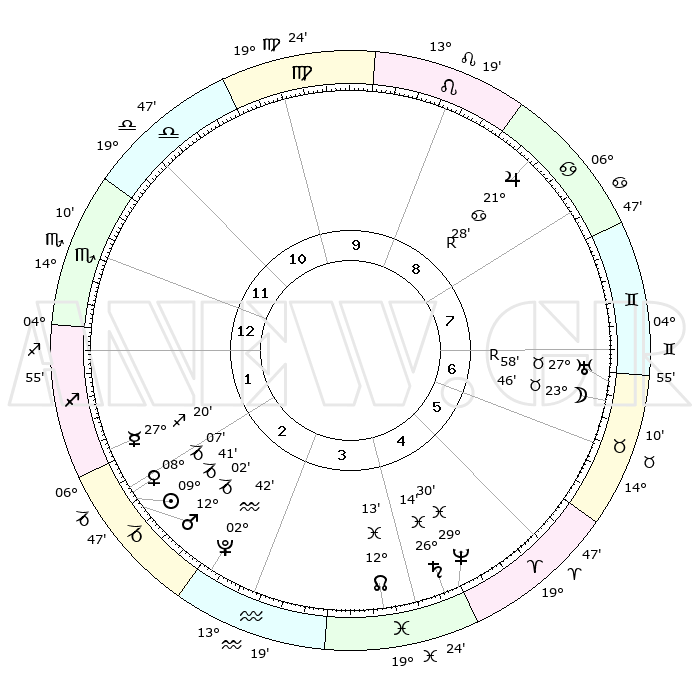 | | ΘΕΣΕΙΣ ΠΛΑΝΗΤΩΝ ΑΣΤΡΟΛΟΓΙΚΟΥ ΧΑΡΤΗ ΤΗΣ ΣΤΙΓΜΗΣ ΑΥΤΗΣ | | | | Πλανήτης | Ζώδιο | Μοίρες | Δεκαήμ. | Σε οίκο | Απόκλιση | | Ακμές των οίκων | | Ηλιος | Αιγόκερως | 09°36' | Πρώτο | 2 | 23 S 05 | | 1ος | 11°05' | Σκορπιός | | Σελήνη | Ταύρος | 22°33' | Τρίτο | 7 | 23 N 03 | | 2ος | 10°14' | Τοξότης | | Ερμής | Τοξότης | 27°13' | Τρίτο | 2 | 23 S 52 | | 3ος | 13°15' | Αιγόκερως | | Αφροδίτη | Αιγόκερως | 08°01' | Πρώτο | 2 | 23 S 40 | | 4ος | 18°15' | Υδροχόος | | Αρης | Αιγόκερως | 11°58' | Δεύτερο | 2 | 23 S 46 | | 5ος | 20°52' | Ιχθείς | | Δίας | Καρκίνος | 21°29'R | Τρίτο | 9 | 21 N 57 | | 6ος | 18°23' | Κριός | | Κρόνος | Ιχθείς | 26°14' | Τρίτο | 5 | 03 S 35 | | 7ος | 11°05' | Ταύρος | | Ουρανός | Ταύρος | 27°58'R | Τρίτο | 7 | 19 N 31 | | 8ος | 10°14' | Δίδυμοι | | Ποσειδώνας | Ιχθείς | 29°30' | Τρίτο | 5 | 01 S 25 | | 9ος | 13°15' | Καρκίνος | | Πλούτωνας | Υδροχόος | 02°42' | Πρώτο | 3 | 23 S 14 | | 10ος | 18°15' | Λέων | | Β. Δεσμός | Ιχθείς | 12°13' | Δεύτερο | 4 | 06 S 59 | | 11ος | 20°52' | Παρθένος | | Ωροσκόπος | Σκορπιός | 11°05' | Δεύτερο | | | 12ος | 18°23' | Ζυγός | | Μεσουράνημα | Λέων | 18°15' | Δεύτερο | | | |