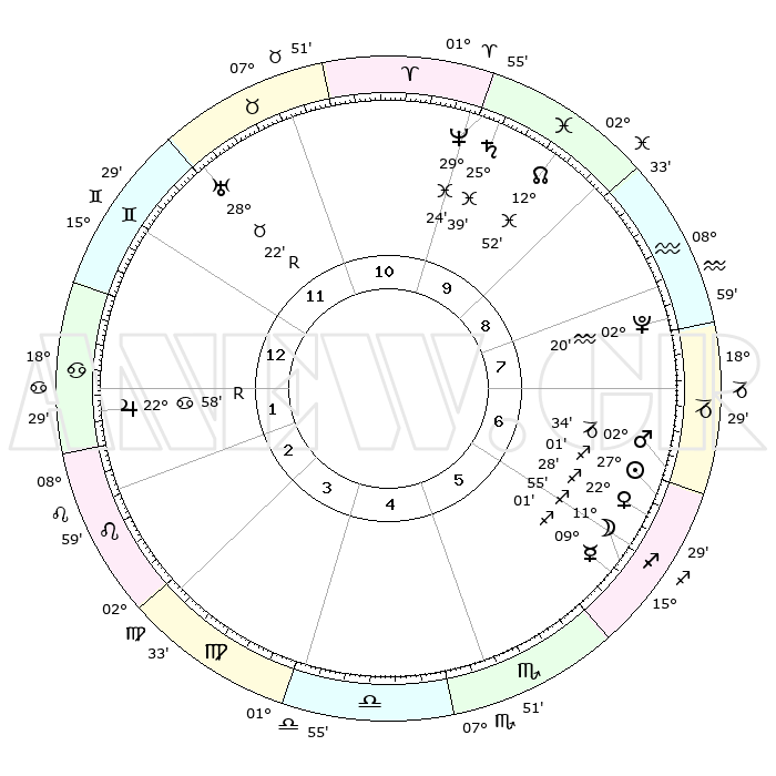 | | ΘΕΣΕΙΣ ΠΛΑΝΗΤΩΝ ΑΣΤΡΟΛΟΓΙΚΟΥ ΧΑΡΤΗ ΤΗΣ ΣΤΙΓΜΗΣ ΑΥΤΗΣ | | | | Πλανήτης | Ζώδιο | Μοίρες | Δεκαήμ. | Σε οίκο | Απόκλιση | | Ακμές των οίκων | | Ηλιος | Τοξότης | 26°34' | Τρίτο | 12 | 23 S 23 | | 1ος | 03°20' | Αιγόκερως | | Σελήνη | Τοξότης | 06°41' | Πρώτο | 11 | 26 S 19 | | 2ος | 11°20' | Υδροχόος | | Ερμής | Τοξότης | 08°24' | Πρώτο | 11 | 20 S 35 | | 3ος | 21°31' | Ιχθείς | | Αφροδίτη | Τοξότης | 21°55' | Τρίτο | 12 | 23 S 09 | | 4ος | 24°54' | Κριός | | Αρης | Αιγόκερως | 02°14' | Πρώτο | 12 | 24 S 13 | | 5ος | 20°42' | Ταύρος | | Δίας | Καρκίνος | 23°01'R | Τρίτο | 7 | 21 N 40 | | 6ος | 12°19' | Δίδυμοι | | Κρόνος | Ιχθείς | 25°38' | Τρίτο | 3 | 03 S 51 | | 7ος | 03°20' | Καρκίνος | | Ουρανός | Ταύρος | 28°23'R | Τρίτο | 5 | 19 N 36 | | 8ος | 11°20' | Λέων | | Ποσειδώνας | Ιχθείς | 29°23' | Τρίτο | 3 | 01 S 28 | | 9ος | 21°31' | Παρθένος | | Πλούτωνας | Υδροχόος | 02°20' | Πρώτο | 1 | 23 S 18 | | 10ος | 24°54' | Ζυγός | | Β. Δεσμός | Ιχθείς | 12°54' | Δεύτερο | 2 | 06 S 43 | | 11ος | 20°42' | Σκορπιός | | Ωροσκόπος | Αιγόκερως | 03°20' | Πρώτο | | | 12ος | 12°19' | Τοξότης | | Μεσουράνημα | Ζυγός | 24°54' | Τρίτο | | | |