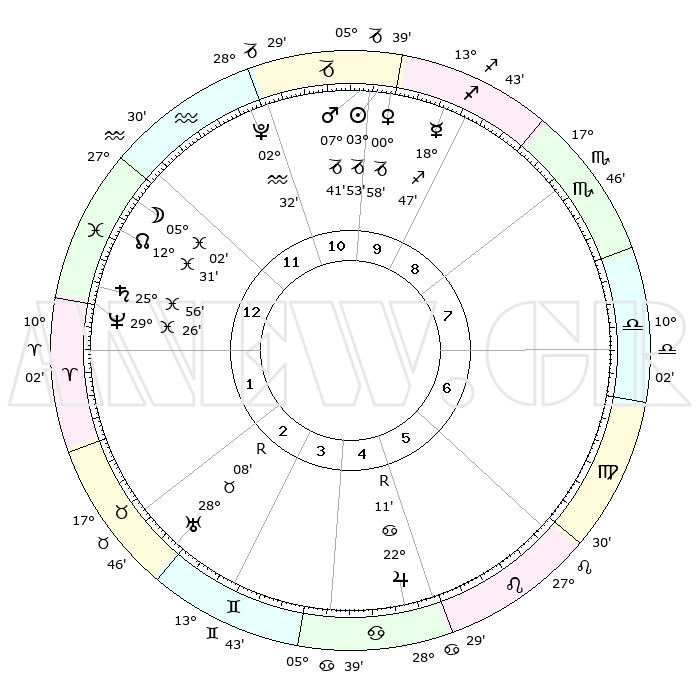 | | ΘΕΣΕΙΣ ΠΛΑΝΗΤΩΝ ΑΣΤΡΟΛΟΓΙΚΟΥ ΧΑΡΤΗ ΤΗΣ ΣΤΙΓΜΗΣ ΑΥΤΗΣ | | | | Πλανήτης | Ζώδιο | Μοίρες | Δεκαήμ. | Σε οίκο | Απόκλιση | | Ακμές των οίκων | | Ηλιος | Αιγόκερως | 03°49' | Πρώτο | 11 | 23 S 23 | | 1ος | 28°54' | Υδροχόος | | Σελήνη | Ιχθείς | 04°07' | Πρώτο | 1 | 10 S 35 | | 2ος | 14°24' | Κριός | | Ερμής | Τοξότης | 18°41' | Δεύτερο | 10 | 22 S 44 | | 3ος | 17°20' | Ταύρος | | Αφροδίτη | Αιγόκερως | 00°52' | Πρώτο | 10 | 23 S 41 | | 4ος | 11°51' | Δίδυμοι | | Αρης | Αιγόκερως | 07°38' | Πρώτο | 11 | 24 S 04 | | 5ος | 03°32' | Καρκίνος | | Δίας | Καρκίνος | 22°12'R | Τρίτο | 5 | 21 N 50 | | 6ος | 26°59' | Καρκίνος | | Κρόνος | Ιχθείς | 25°56' | Τρίτο | 1 | 03 S 43 | | 7ος | 28°54' | Λέων | | Ουρανός | Ταύρος | 28°08'R | Τρίτο | 3 | 19 N 33 | | 8ος | 14°24' | Ζυγός | | Ποσειδώνας | Ιχθείς | 29°26' | Τρίτο | 1 | 01 S 27 | | 9ος | 17°20' | Σκορπιός | | Πλούτωνας | Υδροχόος | 02°32' | Πρώτο | 12 | 23 S 16 | | 10ος | 11°51' | Τοξότης | | Β. Δεσμός | Ιχθείς | 12°31' | Δεύτερο | 1 | 06 S 52 | | 11ος | 03°32' | Αιγόκερως | | Ωροσκόπος | Υδροχόος | 28°54' | Τρίτο | | | 12ος | 26°59' | Αιγόκερως | | Μεσουράνημα | Τοξότης | 11°51' | Δεύτερο | | | |
